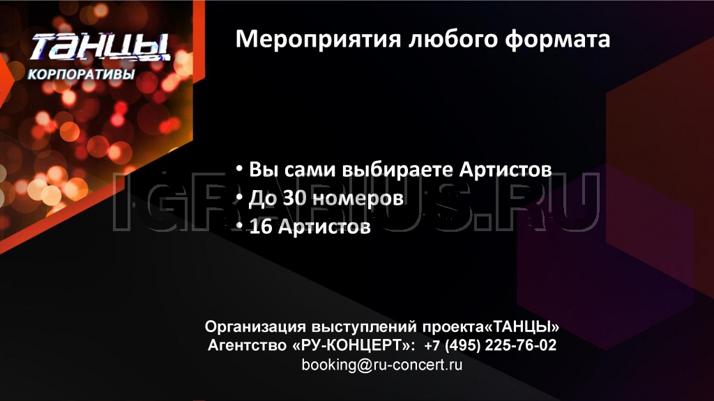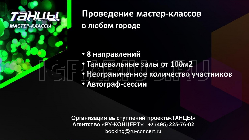 При проведении концерта необходимо принимать во внимание массу нюансов: свободные даты в расписании Шоу «Танцы» (ТНТ), сумму гонорара, а также бытовой и технический райдер.
