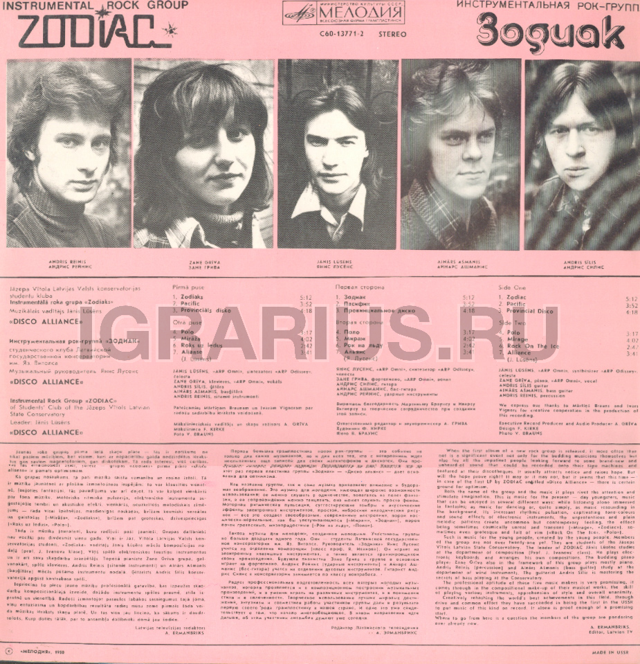 Группа Zodiac образовалась в самом конце 1970-х и уже в 1980 году выпустила дебютный альбом — «Диско альянс» («Disco Alliance»). Это был настоящий прорыв. Диск оказался очень популярным в СССР, за три года было продано свыше 5,8 млн копий. Большую роль в популярности сыграл уникальный для советской сцены саунд — музыканты объединили уже привычные элементы евродиско с необычными космическими синтезаторными звуками. Таким образом группа Zodiac начала свою биографию как один из первых в Советском Союзе синти-коллектив и первый, предложивший космическую музыку.