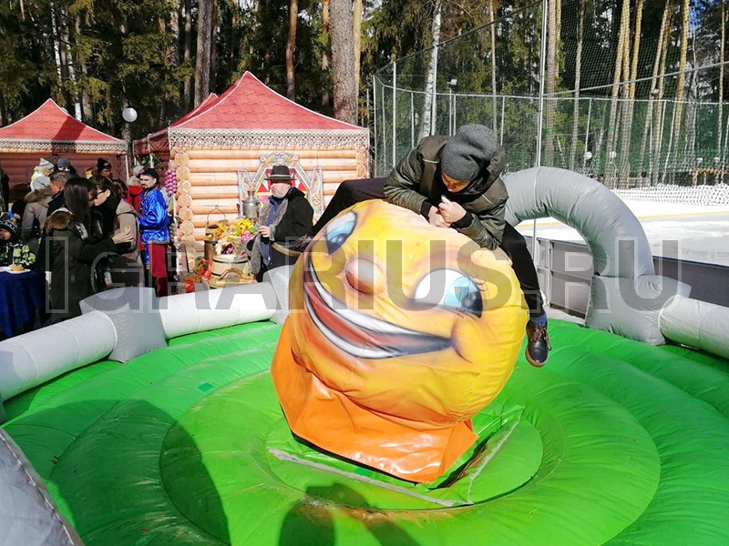 Отличная новинка для масленичных гуляний и программ в русском народном стиле - Колобок Родео! Попробуйте удержаться на нем хотя бы одну минуты и вы победитель! но это не так просто как кажется на первый взгляд! Наш колобок очень резвый и попытается скинуть вас любыми способами!