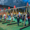 Отличный аттракцион для большой компании! ряд из 4 качелей подойдет для крупных городских мероприятий или для небольшой компании с детьми. Наши качели создадут атмосферу Древней Руси и перенесут Вас в старинную русскую деревню.