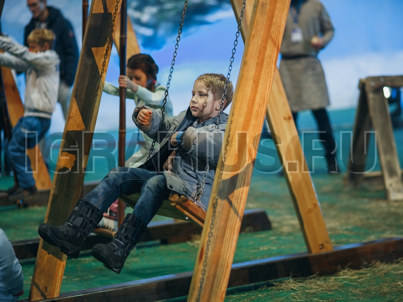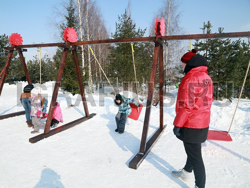 Отличный аттракцион для большой компании! ряд из 4 качелей подойдет для крупных городских мероприятий или для небольшой компании с детьми. Наши качели создадут атмосферу Древней Руси и перенесут Вас в старинную русскую деревню.