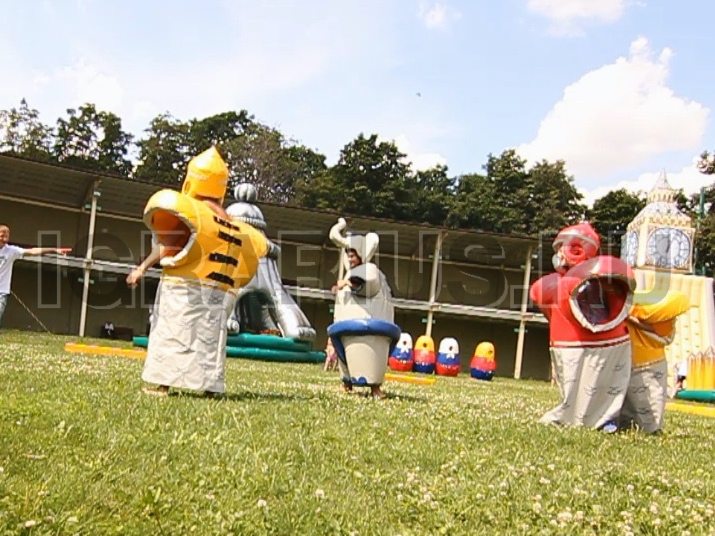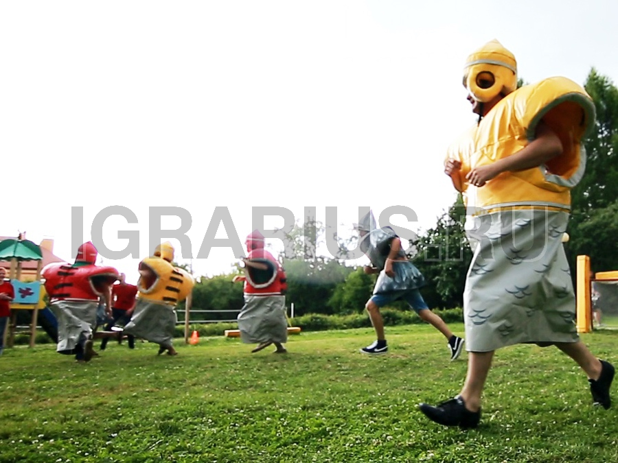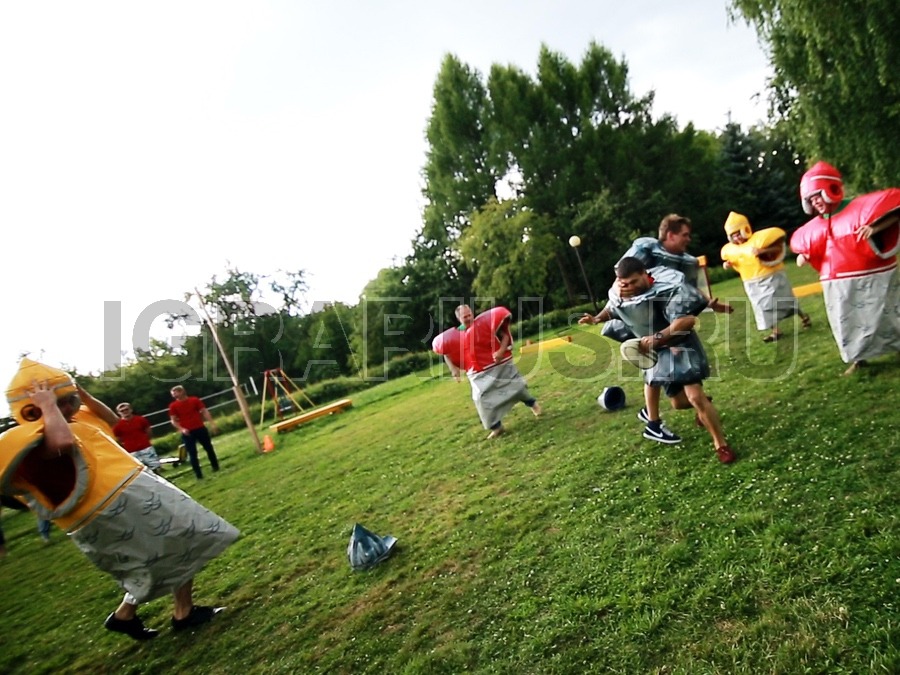 Отличный конкурс который впишется в программу по тимбилдингу в Рыцарском или Славянском стиле. Задача участников: одеть на себя костюм богатыря и шлем, взять в руки булаву и победить соперника! Правила игры могут быть различными, например – сбить шлем противника булавой, либо вытолкнуть «врага» за границы поля боя. В нашем арсенале 3 пары богатырских костюмов – 2 пары взрослых и одна детская, если вы возьмете в аренду все костюмы, можно устроить Богатырскую эстафету по три человека в команде, для семейных стартов «Папа, Мама, я – богатырская семья!»
