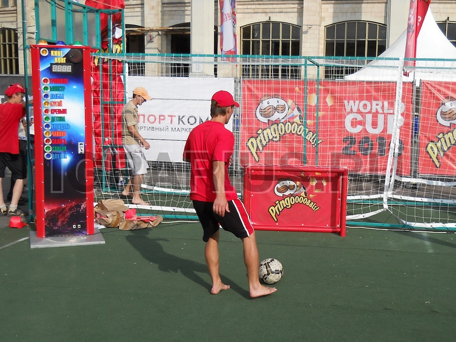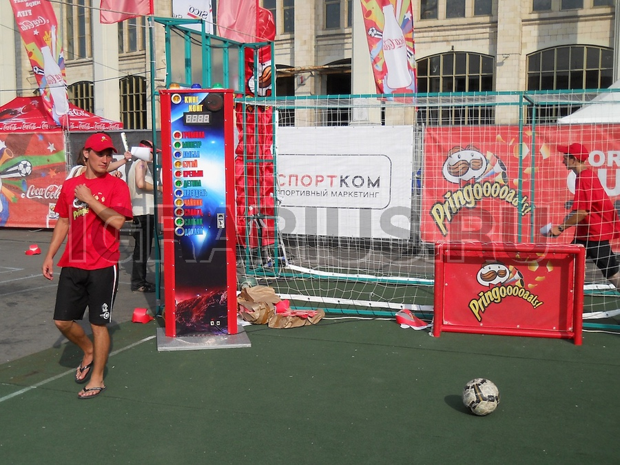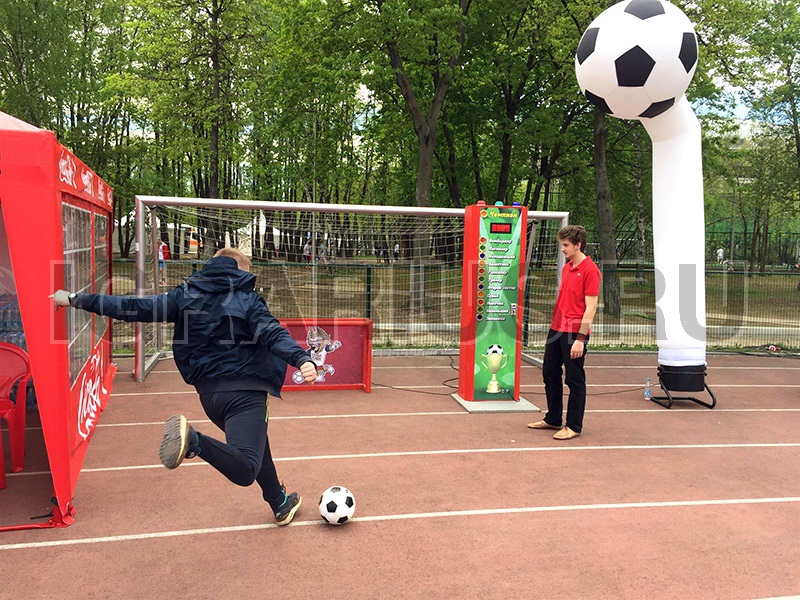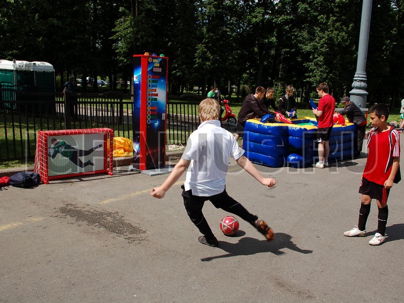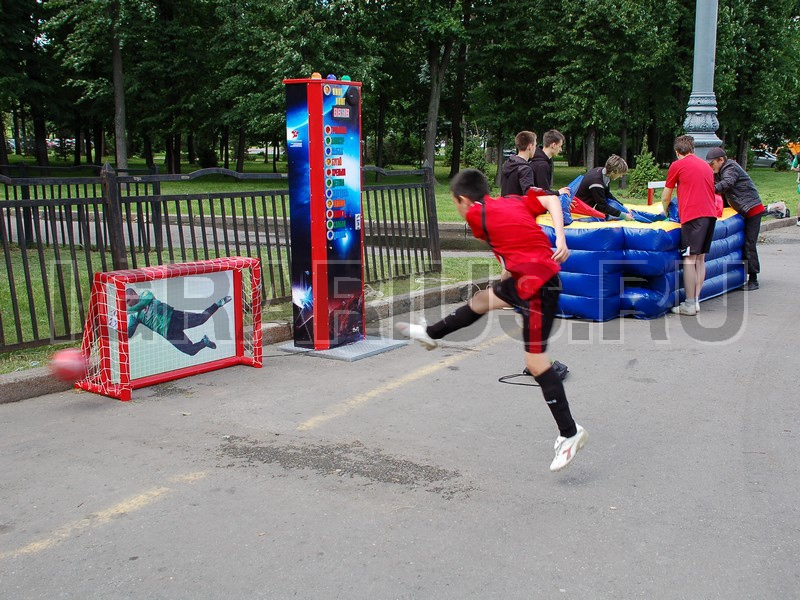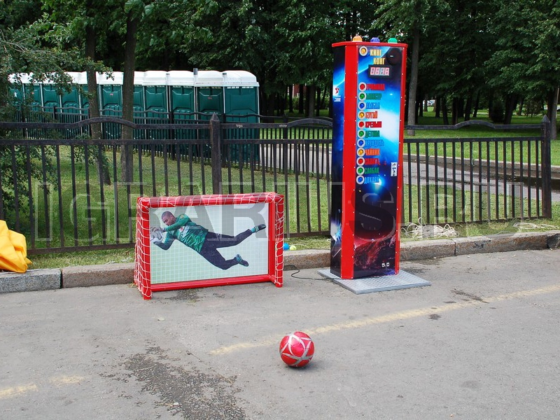 Силомер Футбольные ворота – порадует силачей футбольного дела, так как здесь надо собрать всю свою мощь, и как следует ударить по воротам противника, тут главное не промахнуться! И если вы попали футбольным мячом в ворота, многоуважаемый компьютер выдаст силу вашего удара в цифровом эквиваленте на специальном табло и зычный голос озвучит степень вашей силушки. Один из популярнейших силомеров на футбольных турнирах и спортивных праздниках.