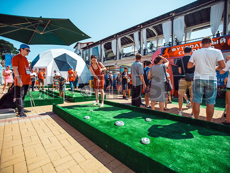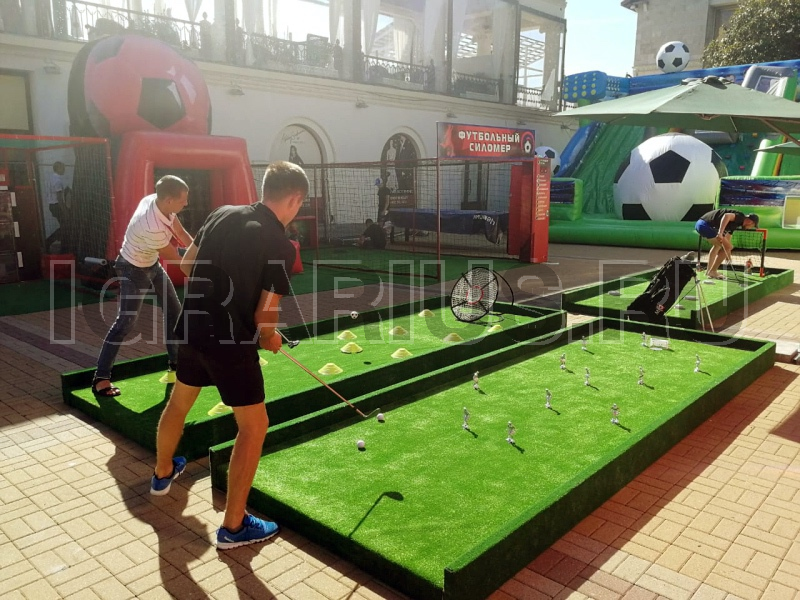 Мы решили немного изменить традиционный гольф и добавить к нему элементы футбола, и у нас получилась увлекательная новая игра - «ФутболГольф»! Эта игра позволит вам и вашим друзьям отлично повеселиться. Клюшка для гольфа и шарик, по которому нужно бить, остались нами не тронутыми, а вот поле значительно изменилось. Теперь, как препятствие на пути шарика, стоят наши стальные футболисты, защищающие ворота от прямого попадания. Игра предусматривает несколько вариаций, поэтому скучно не будет. Приходите и развлеките себя и друзей!