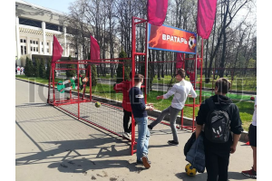 Новинка среди наших футбольных аттракционов это конечно же футбольный дартс! Играем исключительно ногами и стараемся попасть точно в центр мишени! Аттракцион отлично впишется в футбольную фан-зону, а при желании его возможно забрендировать!