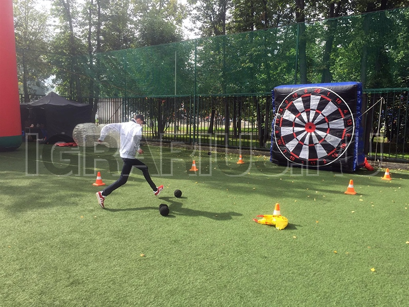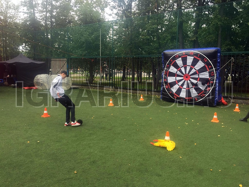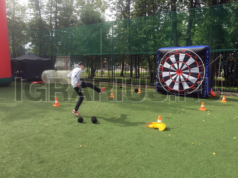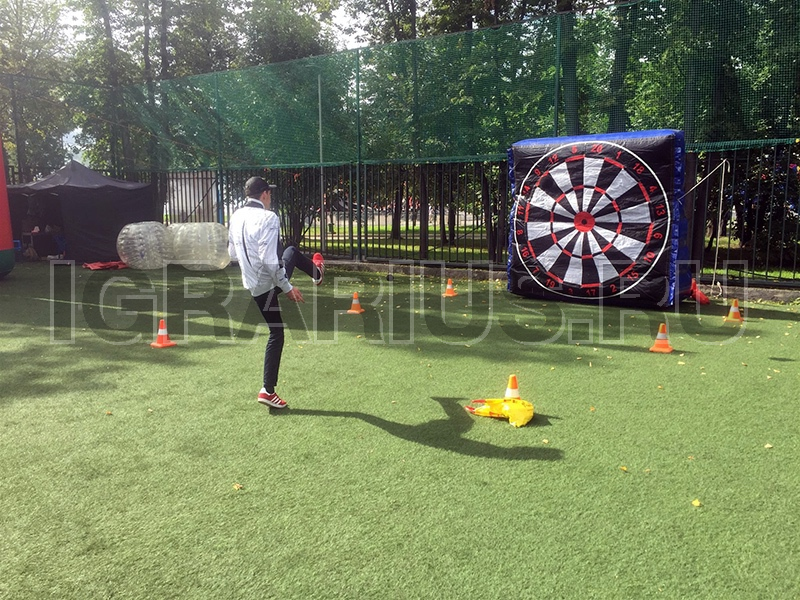 Новинка среди наших футбольных аттракционов это конечно же футбольный дартс! Играем исключительно ногами и стараемся попасть точно в центр мишени! Аттракцион отлично впишется в футбольную фан-зону, а при желании его возможно забрендировать!