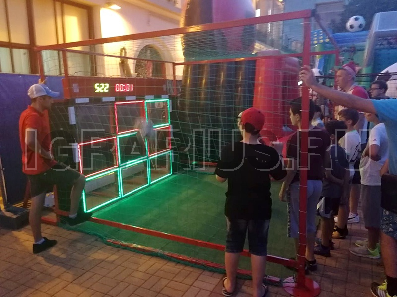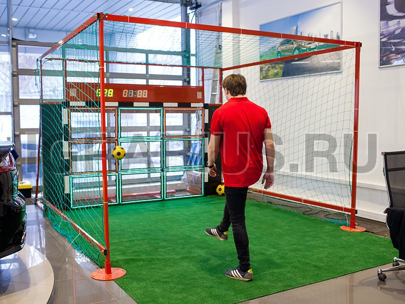 Новинка среди футбольных аттракционов! Интерактивный точный гол подойдет для любителей современных технологий и любителей спорта. Задача в аттракционе проста – набрать как можно больше очков попадая по разным мишеням, каждая со своей стоимостью. Результат высвечивается на табло, а мишени при попадании на них загораются светодиодами.
