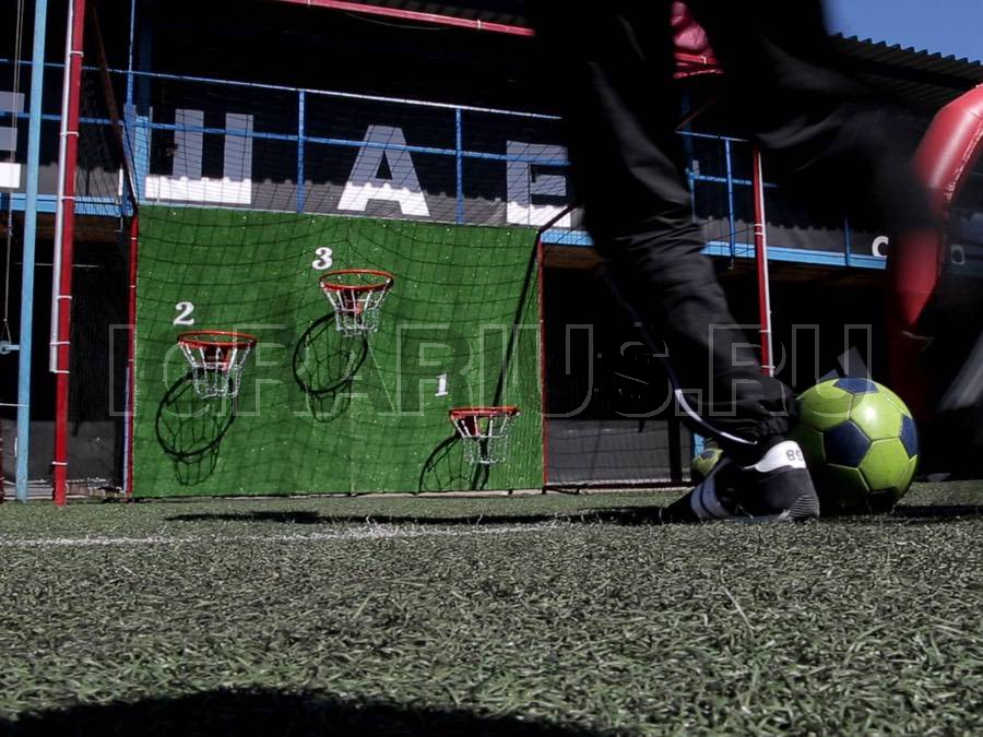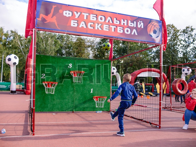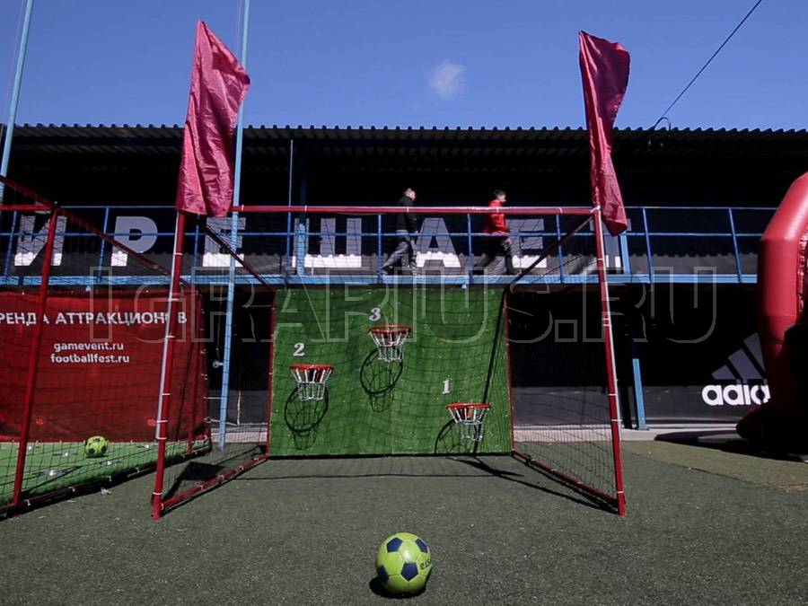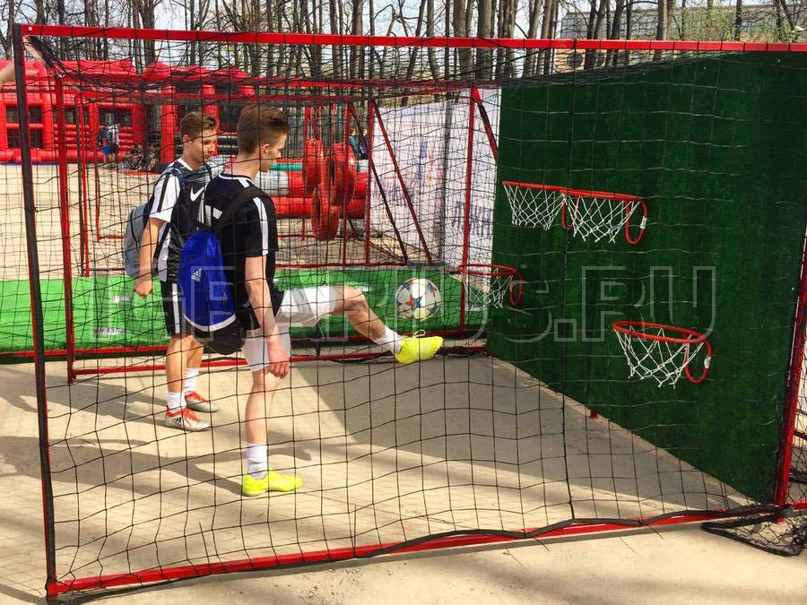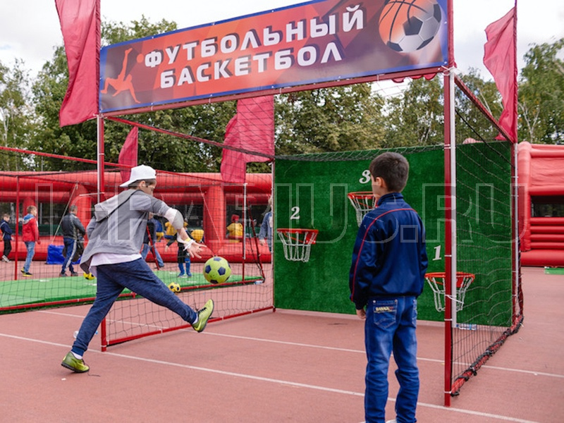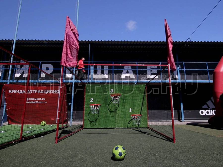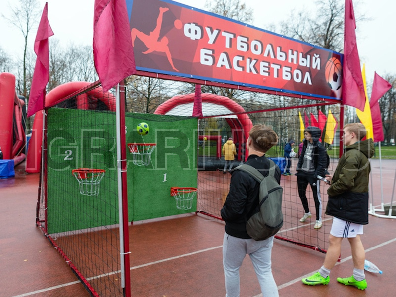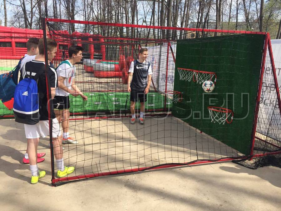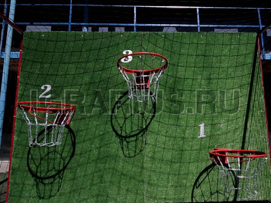 Кольца, размещенные в верхней части, имеют ценность 3 балла, в нижней 1 балл. В игре принимают участие 2 человека. Задача за одну минут набрать наибольшее количество балов, забивая мячи в сетку. Сначала задание выполняет первый игрок, затем его соперник. Победителем становится игрок, набравший наибольшее количество баллов.