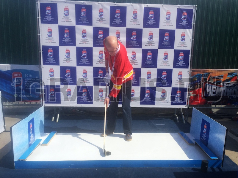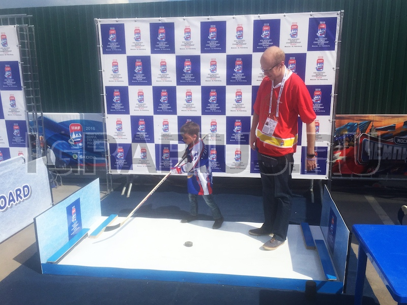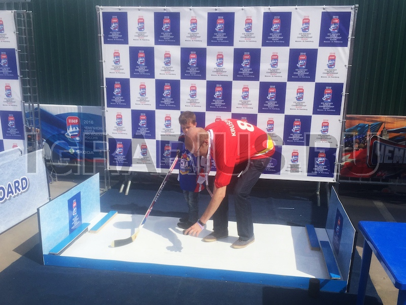 Мини-аттракцион для всех любителей хоккея. Задача игроков за отведенное количество времени как можно больше раз прокатится от начала до конца, как это делают на тренировках хоккеисты.