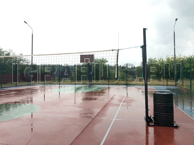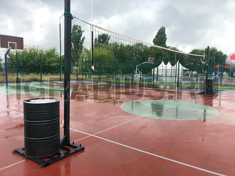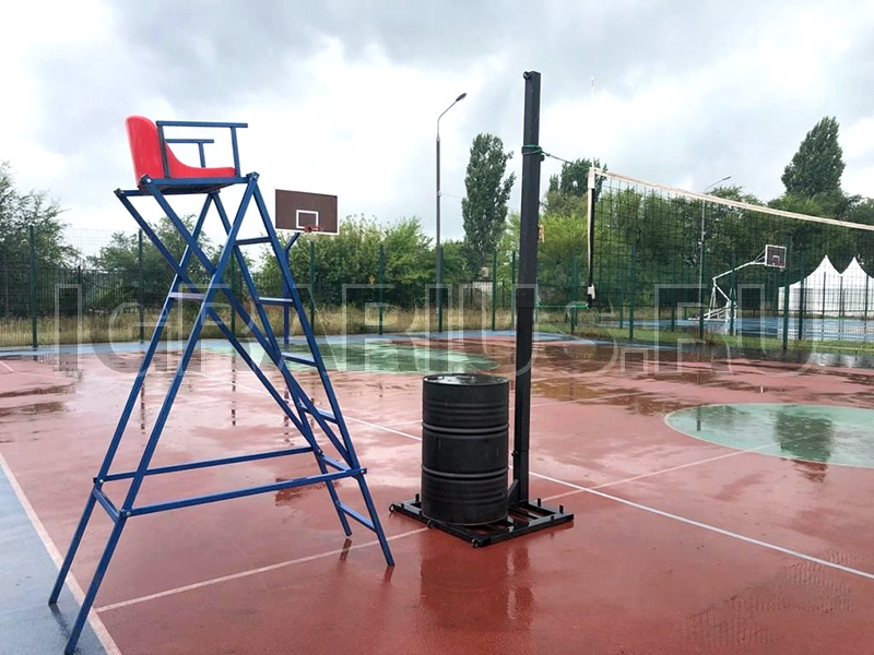 Стойки волейбольные мобильные с утяжилителями, сетка с антеннами, разметка, мячи 2шт., вышка судейская, судейская тумба с перекидным табло, информационный стенд 60х80см, манишки (2 комплекта по 10шт.), насос.