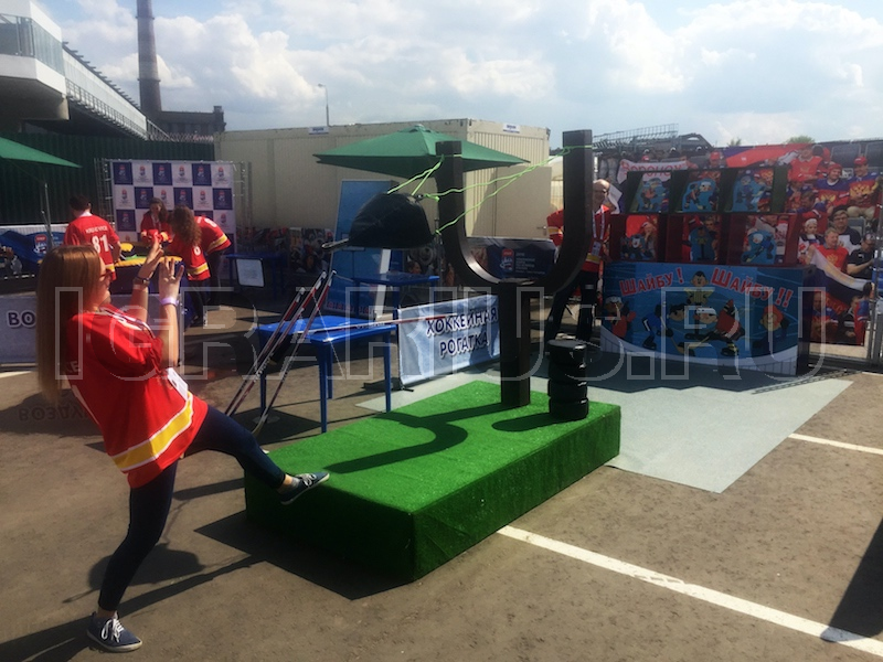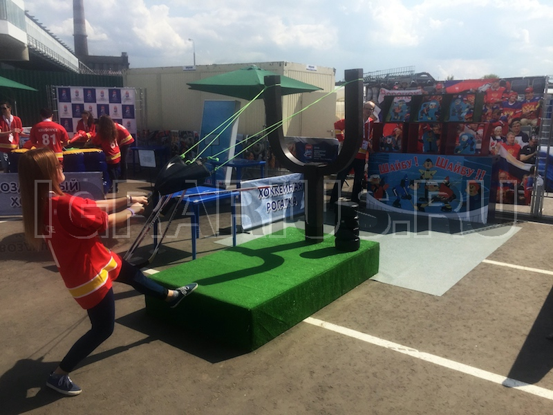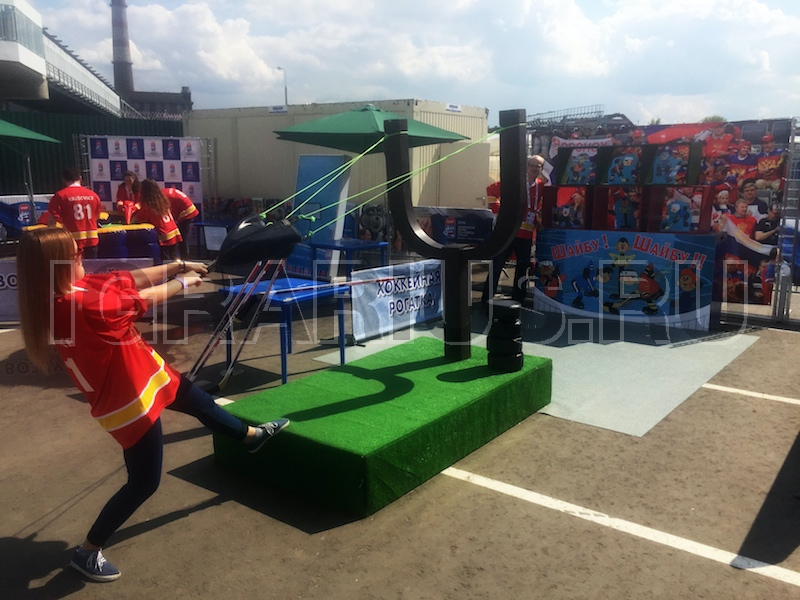 Представляем Вашему вниманию новинку в сфере аренды аттракционов, аналог популярнейшей игры Angry Birds в хоккейном стиле - аттракцион "Шайбу! Шайбу!". Правила те же что и в Angry Birds, только в этом случае сбивать необходимо хоккеистов мягкими шайбами. Приготовились? Цельсь! Пли!