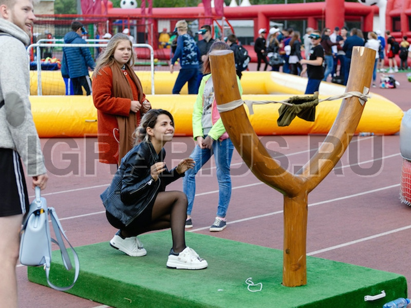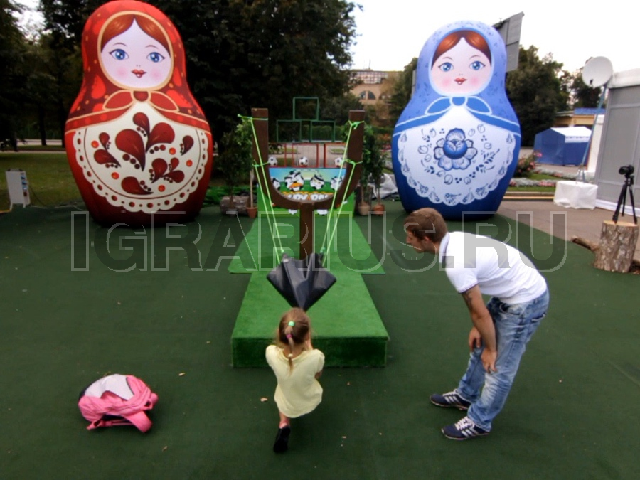 Сердитые мячи – аналог игры Angry Birds. Отлично впишется в футбольный праздник, футбольную фан зону или веселое мероприятие на свежем воздухе. Задача игрока: при помощи рогатки футбольным мячом выбить все мячи находящиеся в ячейках напротив.