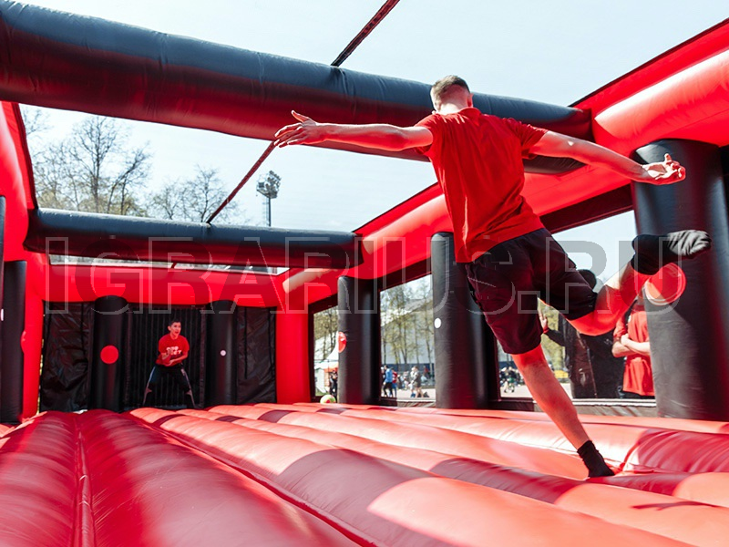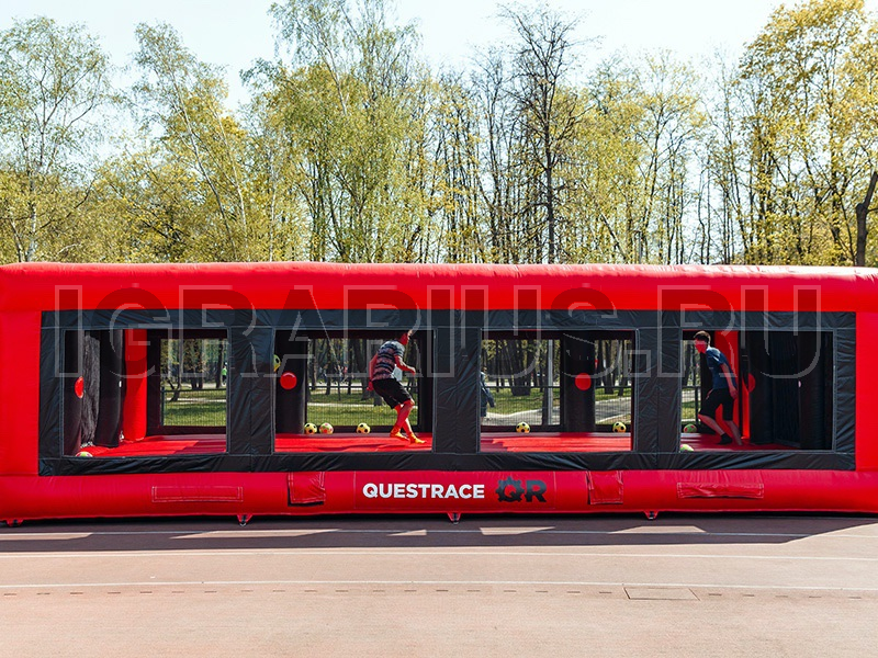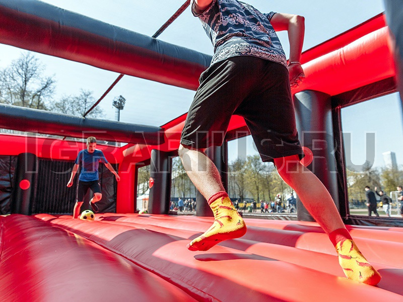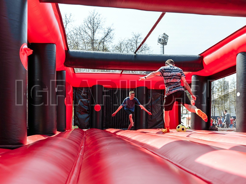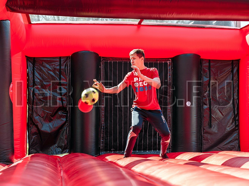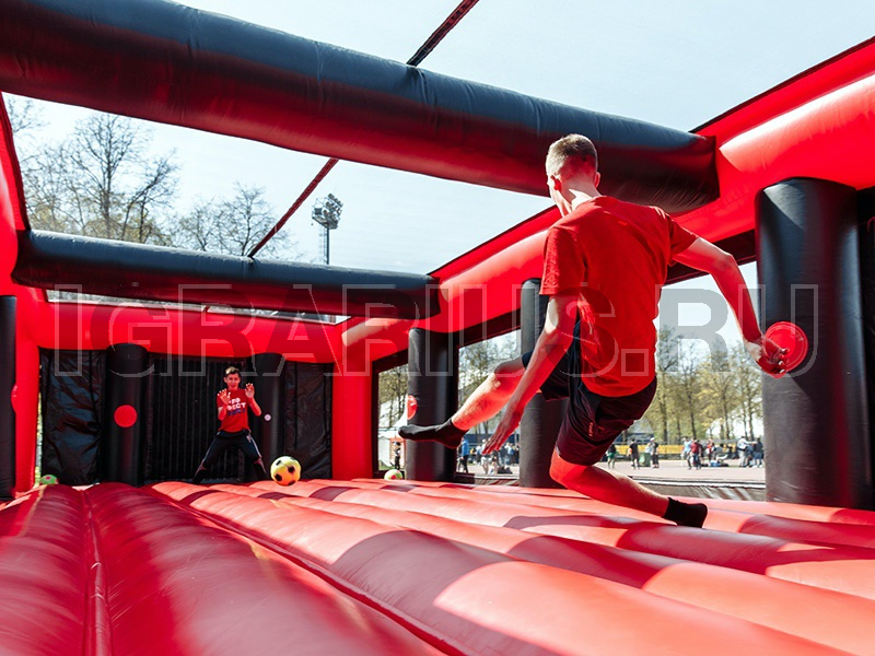 Два игрока одновременно стоят в воротах и одновременно бьют по мячам.:))) И всё это происходит на специальном надувном поле. Задача каждого: как можно больше забить мячей сопернику за определённое время. Забитые мячи остаются висеть на липких воротах, расположенных за вратарем. Поэтому их легко посчитать.