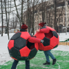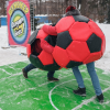 Участники одевают на себя костюмы футбольных мячей, а дальше правила как в обычном сумо. Задача вытолкнуть соперника за пределы площадки, которая представлена в виде мягкого футбольного поля.