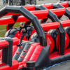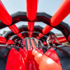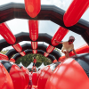 Один из самых веселых этапов полосы препятствий – Сферы. Участнику предстоит пройти испытания совершая прыжки только по надувным сферам, если он с них падает, то ему предстоит начать сначала. Этот модуль очень хорошо развивает чувство баланса и координации