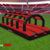 Сейчас нам предстоит вспомнить военные учения и КМБ. Задача спортсменов проползти под довольно низко натянутой сеткой, да еще и по сетке. Как Вы догадались сетка находится в подвешенном состоянии, что очень сильно усложняет прохождение данного элемента.
