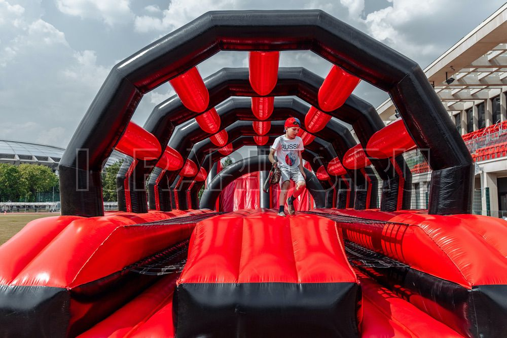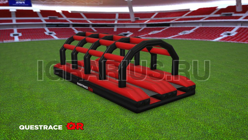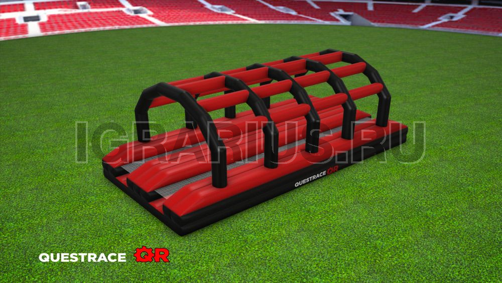 Сейчас нам предстоит вспомнить военные учения и КМБ. Задача спортсменов проползти под довольно низко натянутой сеткой, да еще и по сетке. Как Вы догадались сетка находится в подвешенном состоянии, что очень сильно усложняет прохождение данного элемента.