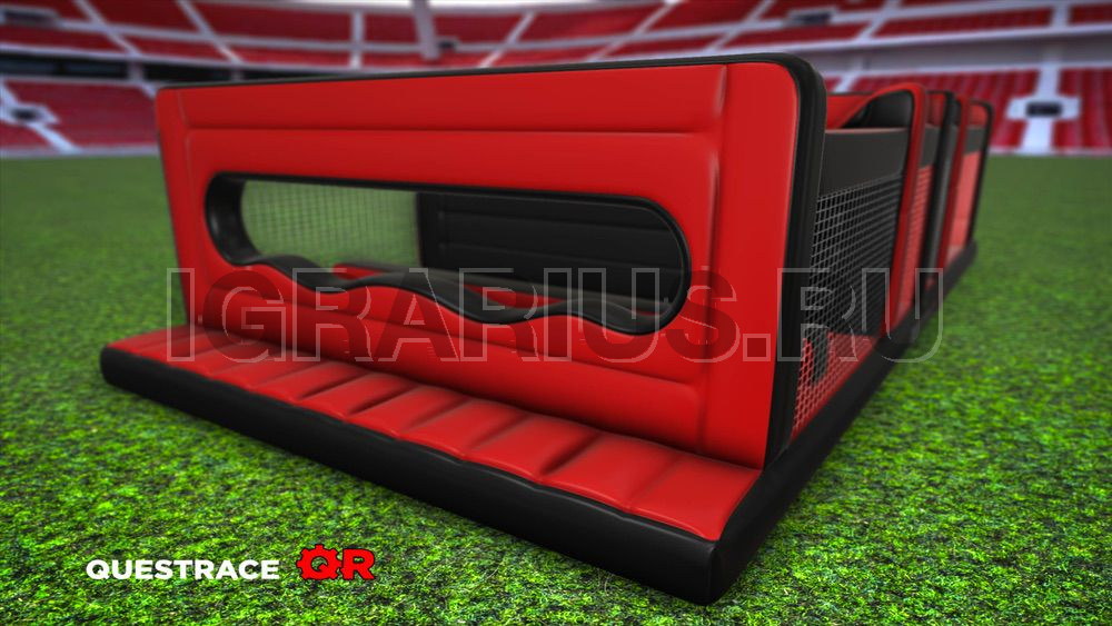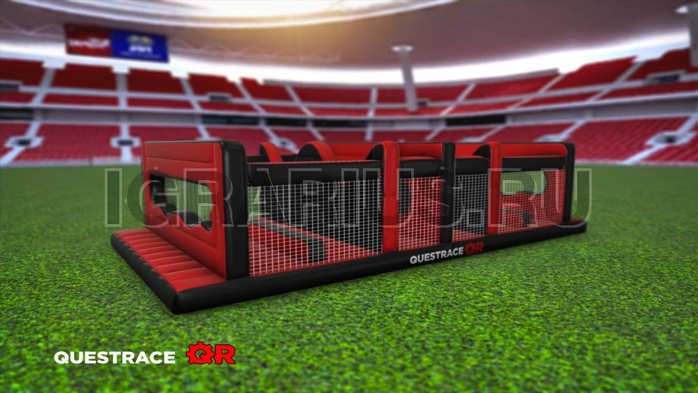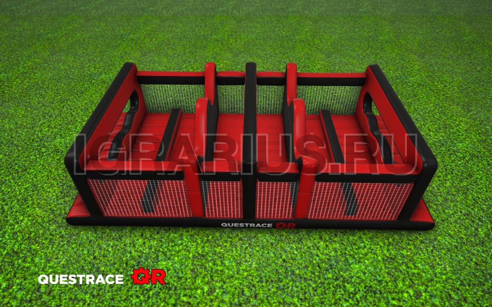 Десятиметровый блок «Стена» станет настоящим испытанием для многих участников QR. Прохождение данного элемента, требует не малой физической подготовки и смекалки. Блок полностью закрыт с двух сторон, что делает его полностью безопасным для участников. Модуль оснащён карманами для интерактивных кнопок, петлями и липучками для различных артефактов, используемых в QR