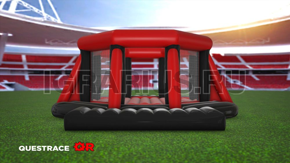 Один из самых многофункциональных модулей! В нем можно разместить интеллектуальное задание, которое участник или команда должны будут разгадать. Модуль может быть использован как самостоятельный батут аналог футбольному аттракционы «Тетрагол» (тут можно ссыль на тетрагол). И еще октагон является отличным сухим бассейном для детей, в него помещается порядка 50000 шаров и когда дети играют внутри это совершенно безопасно, так как батут закрыт со всех сторон.