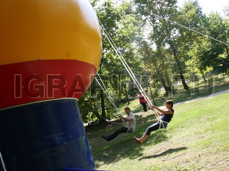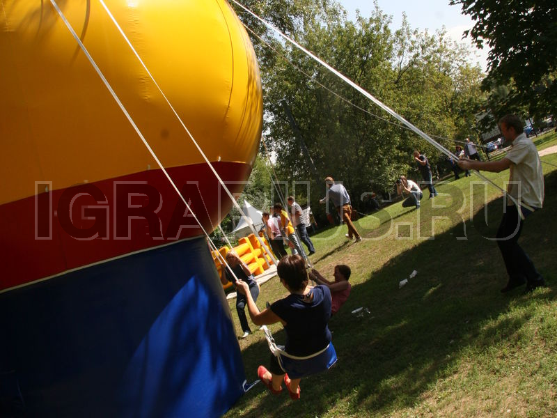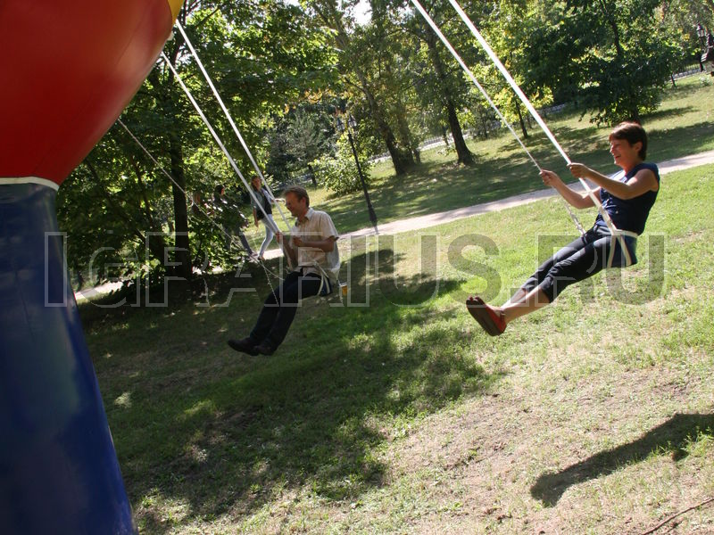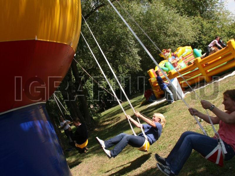 Надувной батут качели с несколькими сиденьями сделаю ваш праздник незабываемым! Ведь на качели с надувным шаром в центре захотят прокатиться не только дети, но и взрослые! Такие незаурядные качели идеально подойдут для ярмарки, детского праздника и просто украсит любое мероприятие! Качели хороши тем, что установить их можно не только на улице, но и в помещении! Поэтому погода не испортит веселье! Покатушкам быть! Ваши гости останутся довольны таким аттракционом!