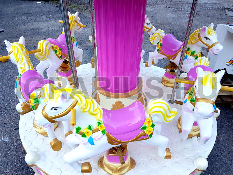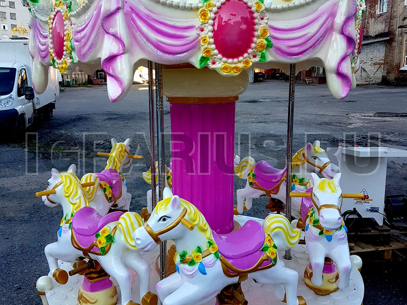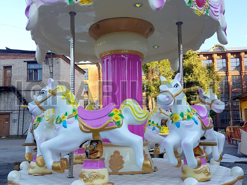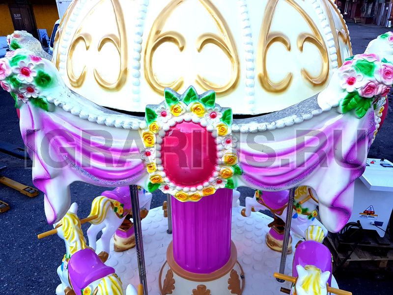 Розовая, воздушная, нежная, как безе - на такой Карусели впору кататься только самым нежным из Принцесс! Карусель Золушка - это наш эксклюзив для самых взыскательных клиентов и их малышек! Только представьте удивление и восхищение маленьких гостей праздника, когда прекрасная Золушка иои романтичная Аврора появятся у вас в гостях на волшебной розовой карусели !