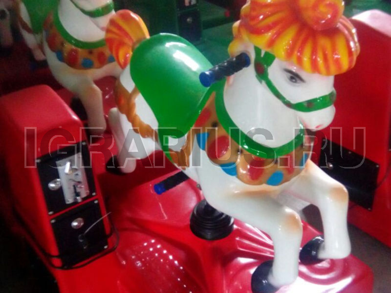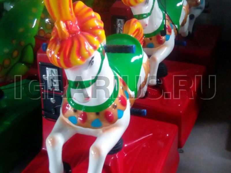 качели, она безопасная, яркая и приносить море удовольствий! Детям придется кататься по очереди, ведь лошадка сажает на себя лишь одного счастливчика! На встречу приключениям спешит детская качалка ЦИРК! Сделайте фотографии на память, малышу будет приятно вспомнить такое забавное развлечение!