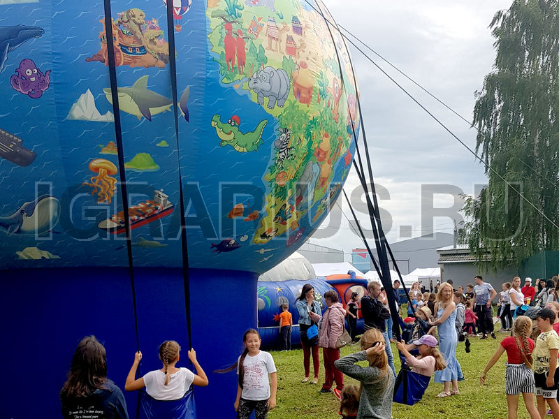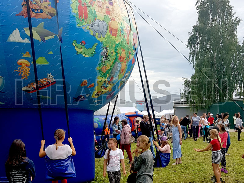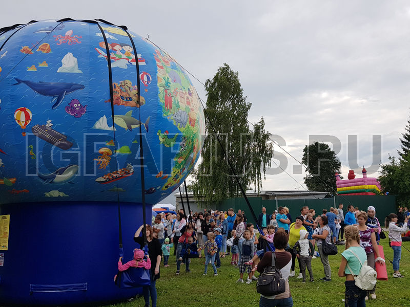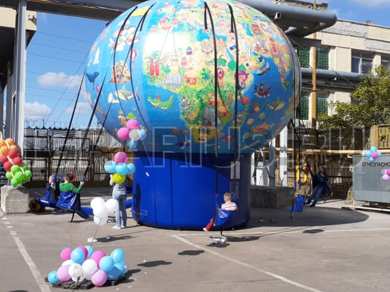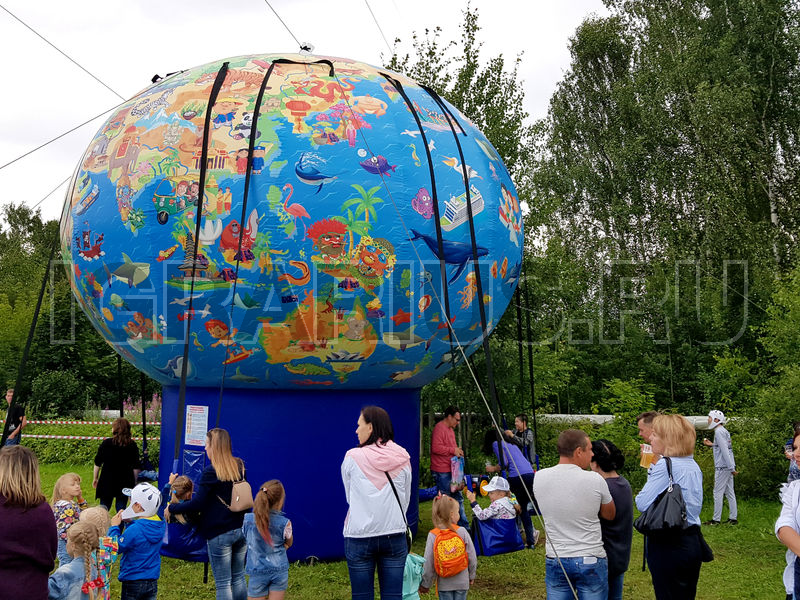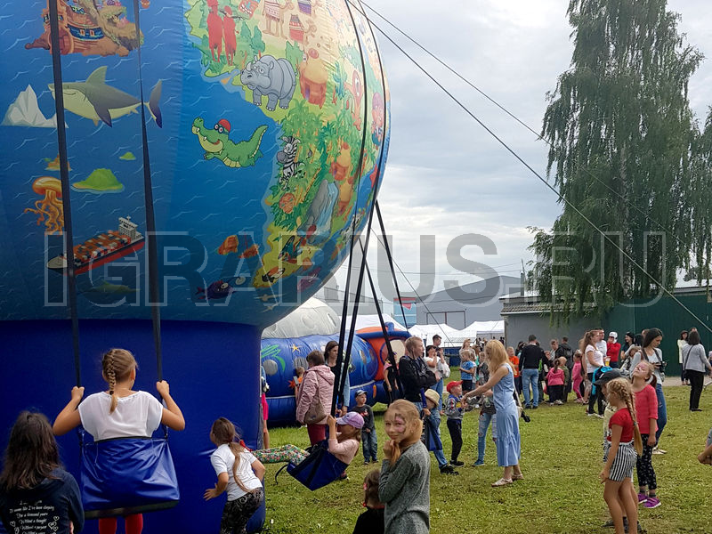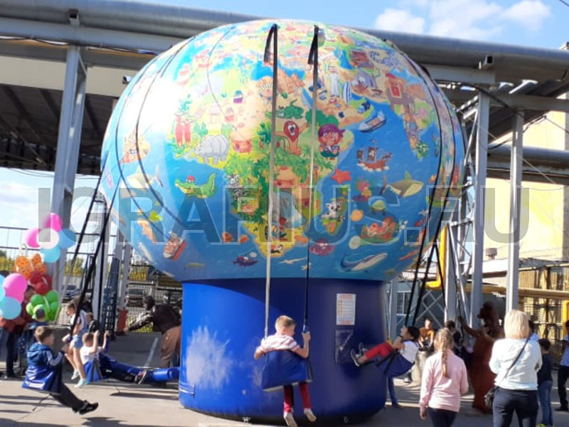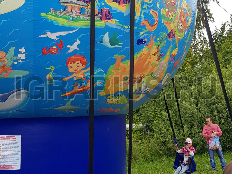 Не крутите старый глобус, не найдете вы на нем... А может быть и найдете! Ведь наш глобус совершенно новенький, яркий и очень веселый! По нему здорово изучать географию, представляя себя знаменитым путешественником и исследователем новых земель. А еще на нем можно кататься! Да-да! Ведь это не просто глобус, а настоящие гигантские надувные качели! Пристегивайтесь ремнями безопасности и отправляйтесь в самое удивительное путешествие в вашей жизни!