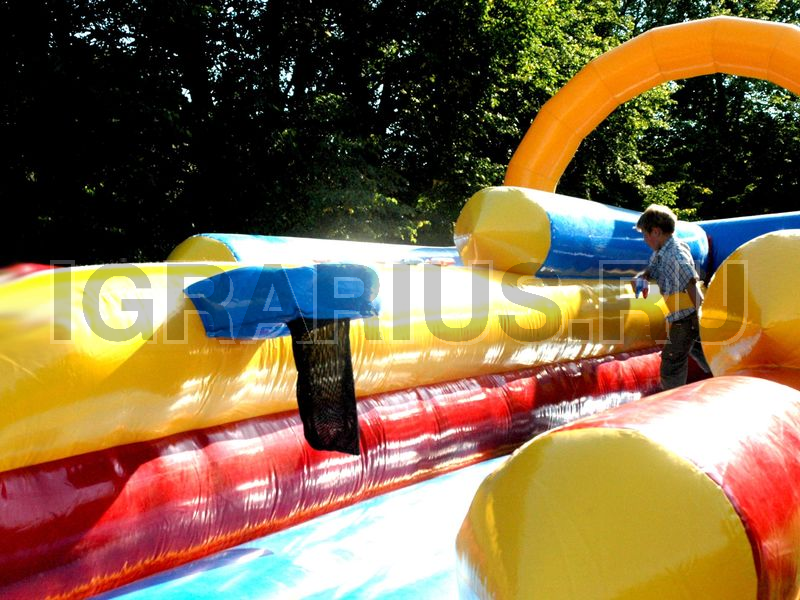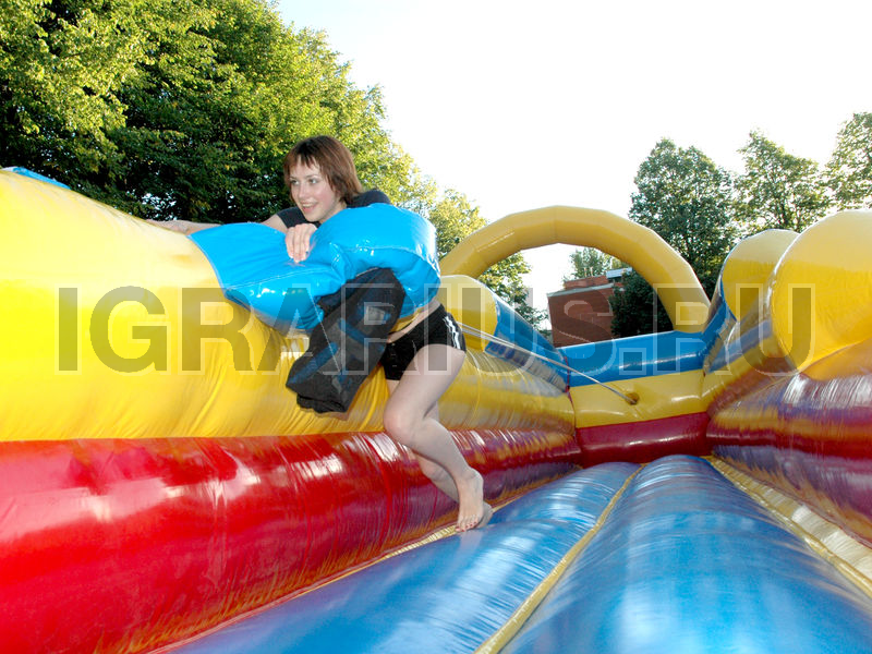 Банжи-ран Тянучка - большой и яркий аттракцион для состязаний. Никто не сможет пройти мимо, увидев, как соревнуются на этом аттракционе дети и взрослые. Банджи Тянучка сочетает в себе сразу несколько видов развлечений - это батут, полоса препятствий и эстафетная плошадка в одном лице! Сколько всякой всячины можно придумать с этим аттракционом: прыжковые эстафеты, батутные забеги, мягкая полоса препятствий... Банджи Тянучка как будто создана специально для того, чтобы Вы упражнялись не только в спорте, но и в фантазии!