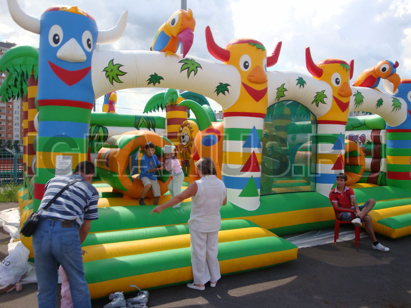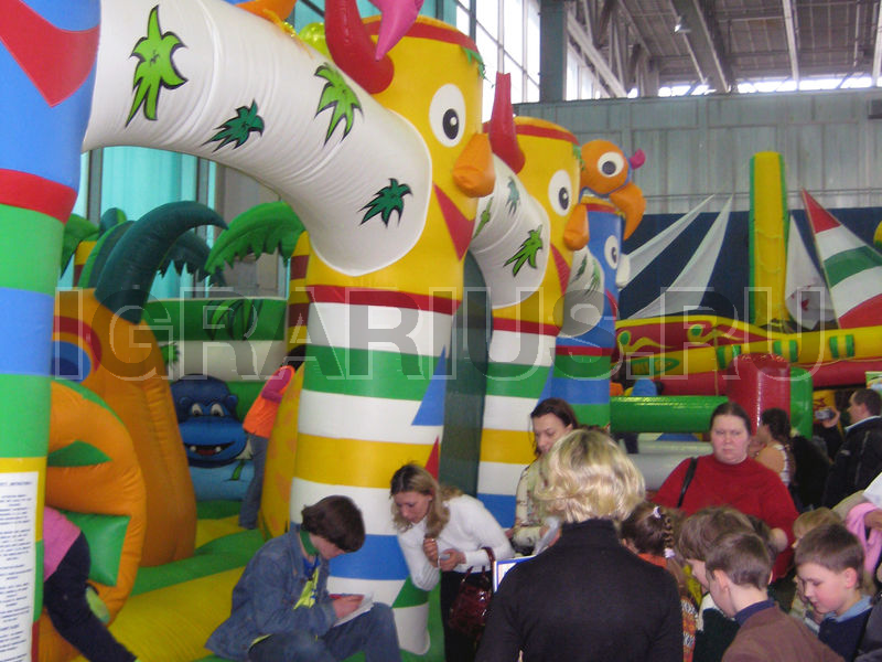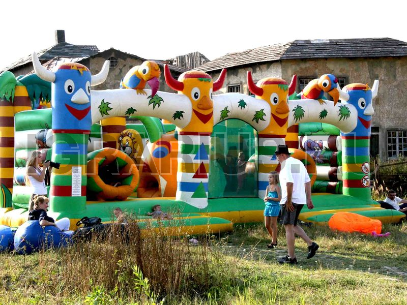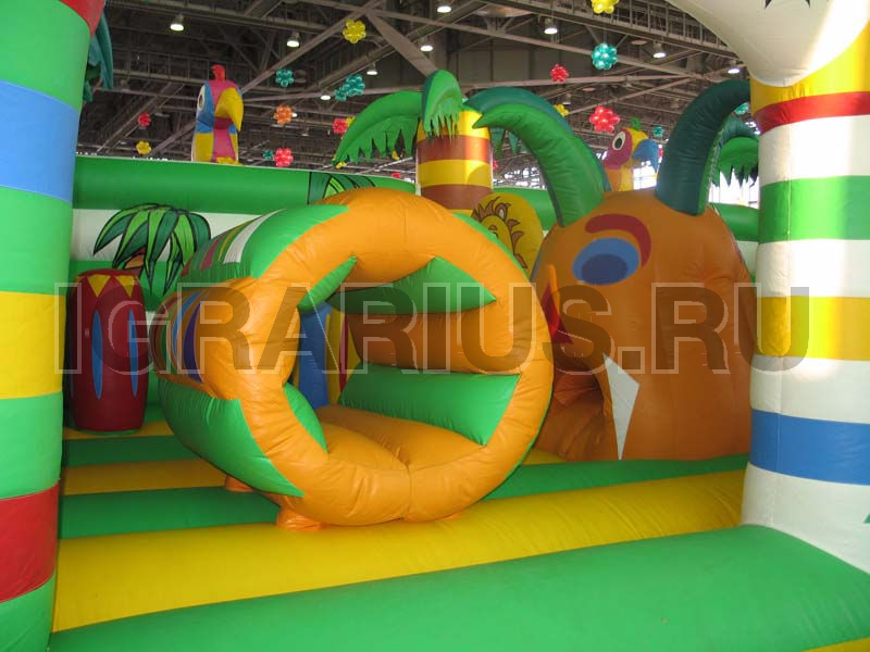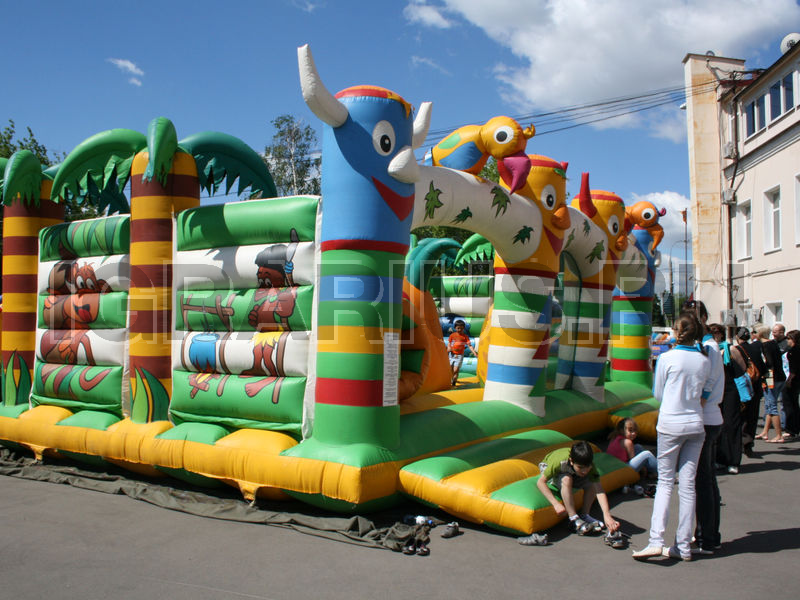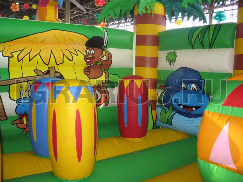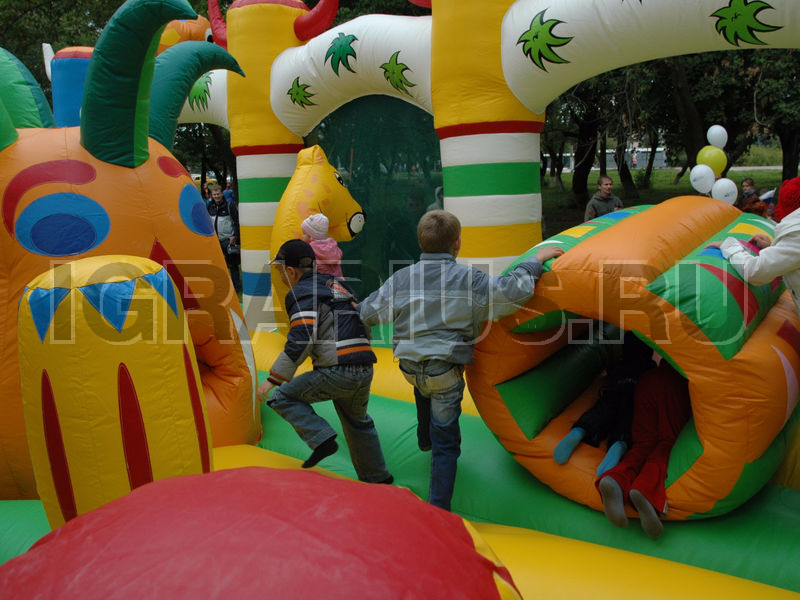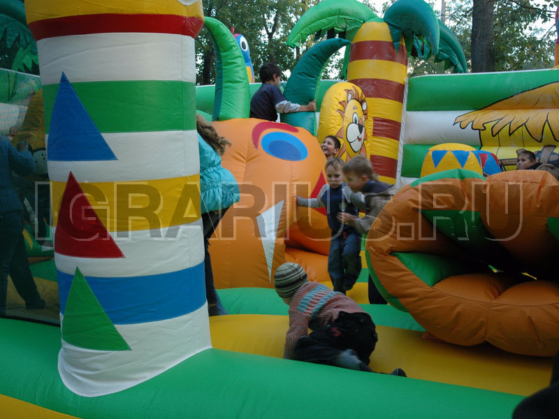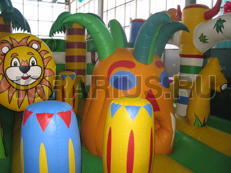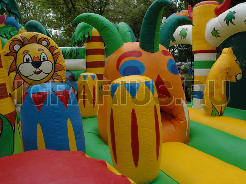 Батут Африка это не просто батут, это надувной батутный комплекс! Окунитесь в мир непроходимых джунглей, познакомьтесь с экзотическими животными. На этом батуте дети могут не просто прыгать, а проходить через надувные препятствия, устраивать соревнования и резвиться. Такой батут хорошо подойдет для праздника на природе, а так же для большого городского праздника или фестиваля, ведь на нем могут уместиться до 15 детей одновременно.