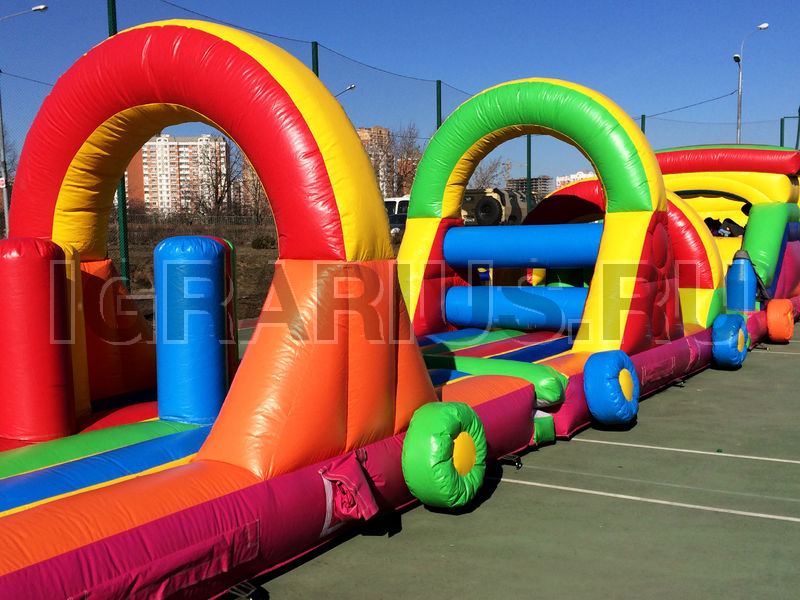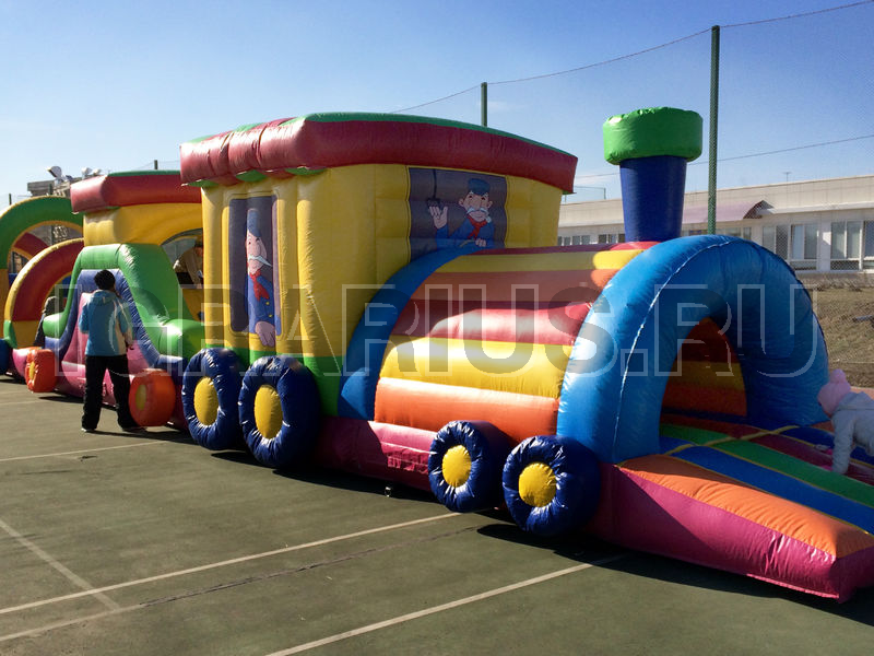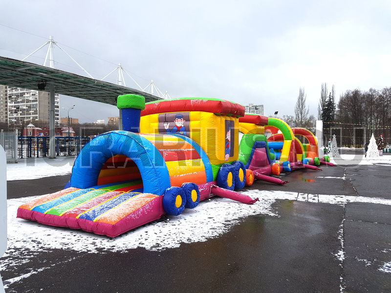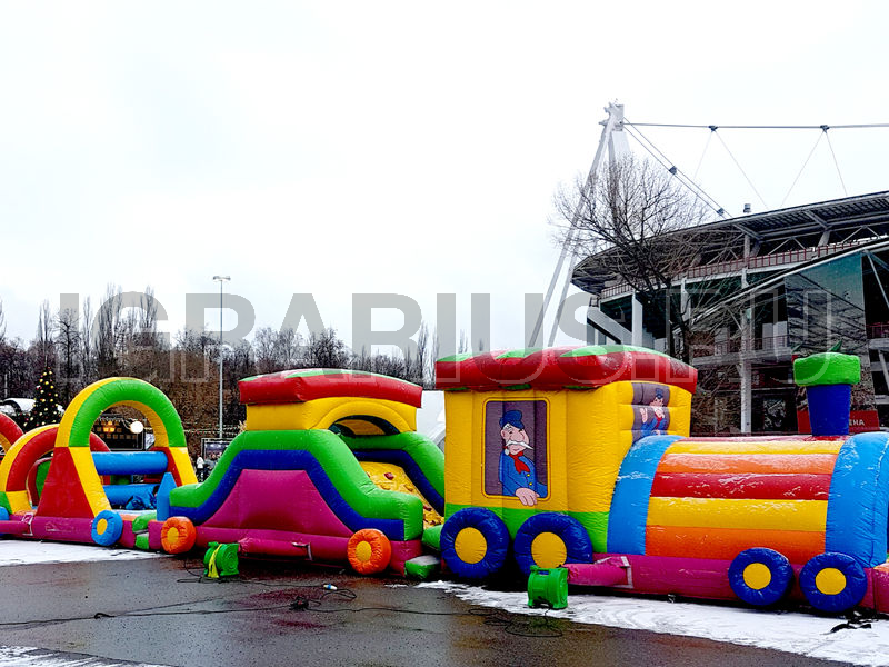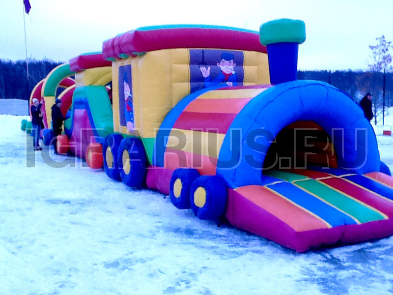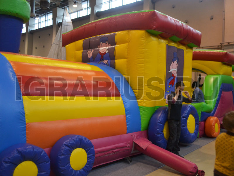 Неизвестно, откуда примчал наш “Весёлый паровозик”, - из Ромашково или нет, но он однозначно такой же добрый, весёлый и позитивный, как герой известного мультфильма! С таким длинным и ярким батутом соскучиться невозможно - прыгать на нём можно далеко и высоко! А на случай, если прыганье наскучит, “Весёлый паровозик” может стать полосой препятствий с горками, барьерами и надувными кольцами, которые необходимо преодолеть!