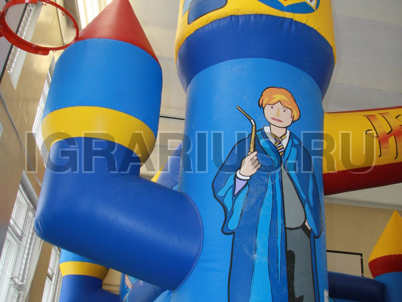 Для юных волшебников мы можем предложить надувной батут Гарри Поттер. С этим батутом у ваших детей появится возможность попрыгать в стенах того самого Хогвартса! А попасть туда вы сможете пройдя сквозь стену на платформе 9 и 3/4. И даже не переживайте, что расшибетесь о стену. Такой батут будет выигрышно смотреться как на празднике на свежем воздухе, так и в спортзале, например.