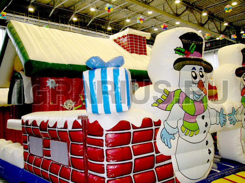 Можно установить батут “Дом Деда Мороза” накануне Нового года, а можно и жарким летом, чтобы приблизить зимнюю сказку! Исследуй дом зимнего волшебника, весело прыгая и играя! Познакомься с надувными снеговиками, полюбуйся зелёной ёлкой, допрыгни до ледяного потолка и ощути сказку на ощупь! С батутом “Дом Деда Мороза” новогодний праздник может быть рядом хоть круглый год!
