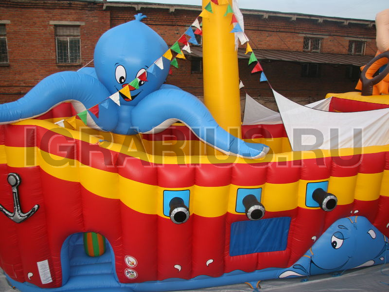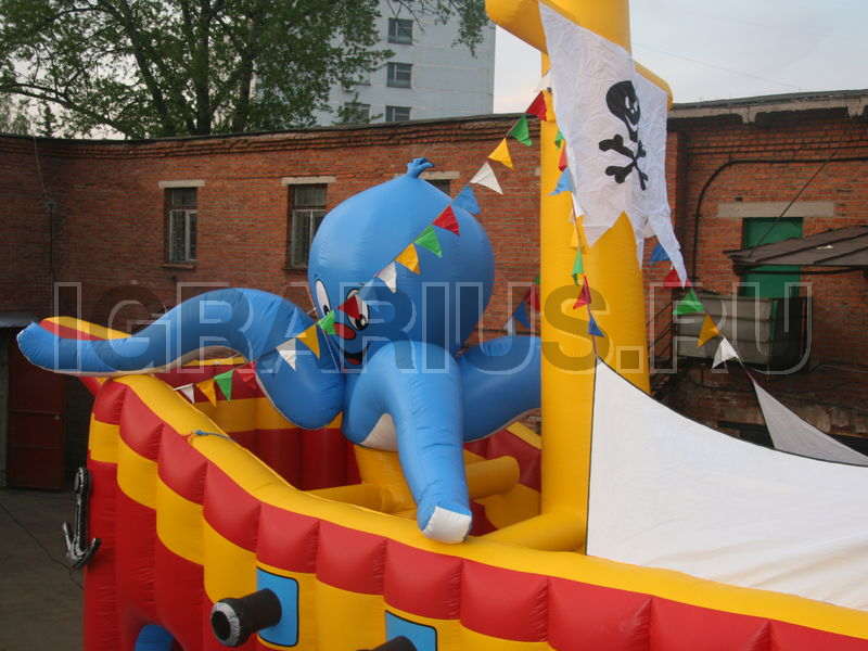 Что может быть задорнее бесстрашных пиратов, которые всегда завораживали наш ум своей отвагой, энергией свободы и приключений. Теперь у вас есть возможность создать на своем празднике настроение того времени, когда дух пиратства был реальностью. С Батутом Пиратский Корабль ваши гости смогут стать в ряды смельчаков, которые принесут вашему празднику незабываемую весёлую атмосферу и счастливые улыбки! Великолепный красочный дизайн Пиратского Корабля, наполненный пушками, горками, тоннелями и различными интересными препятствиями не заставит скучать ни одного вашего гостя, а фотографии с настоящим пиратским кораблем будут всегда напоминать о том подвиге, который сделал каждый, кто вступил в ряды бесстрашных покорителей моря!