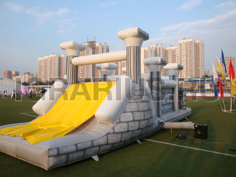 Всем нам знакомы истории о бесстрашных героях древнего мира, которых прославили поэты и народные песни. Теперь и у вас есть возможность сделать ваш праздник настоящим легендарным событием, ведь батут Развалины Олимпа станет тем аттракционом, который наполнит ваших гостей незабываемыми эмоциями и сделает ваш праздник большим событием. Благодаря своему размеру аттракцион вместит множество желающих порезвиться на великолепно стилизованном под древний мир батуте и главное, принесет хорошее настроение всему празднику. Невероятная горка, колонны и арки захватят внимание счастливых гостей, и они смогут почувствовать себя в настоящем волшебном мире, в который они вошли благодаря вашему празднику и батуту Развалины Олимпа.