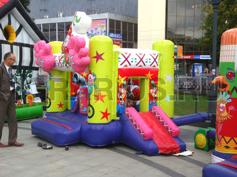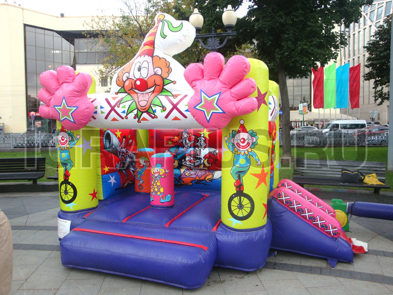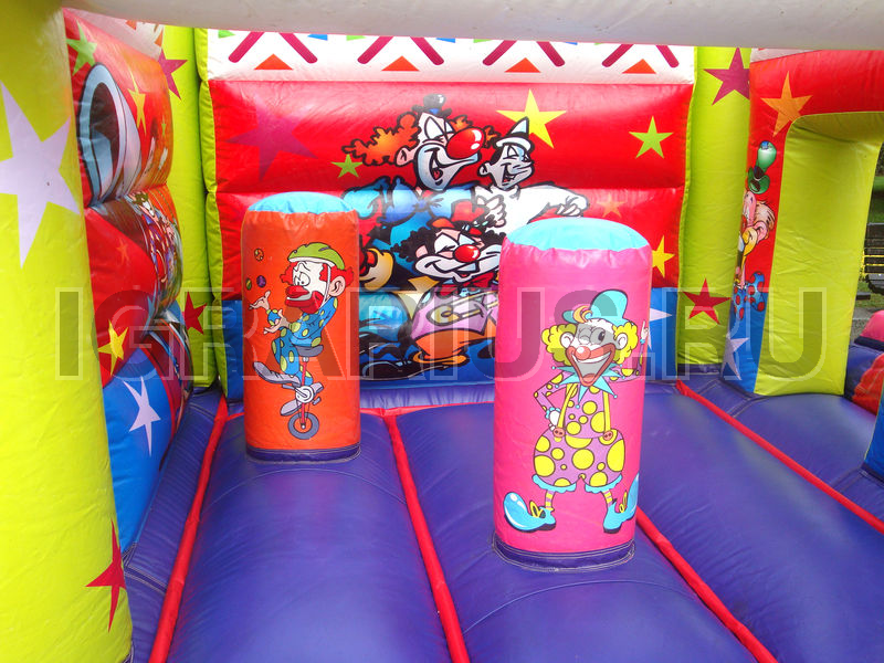 Батут Клоун обладает оригинальным дизайном и станет любимым развлечением для малышей. Яркие солнечные цвета и веселые клоуны, нарисованные на столбиках надувного батута, создадут необходимое настроение для игры.