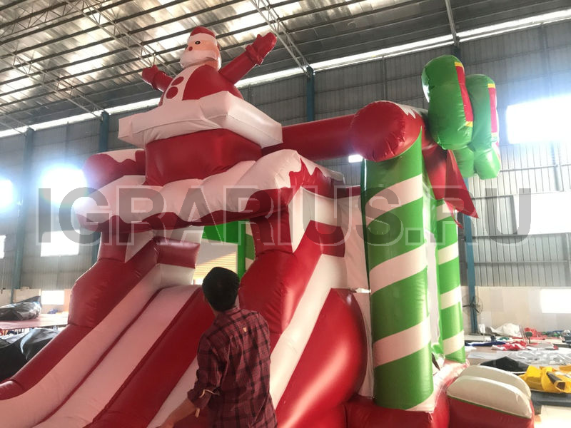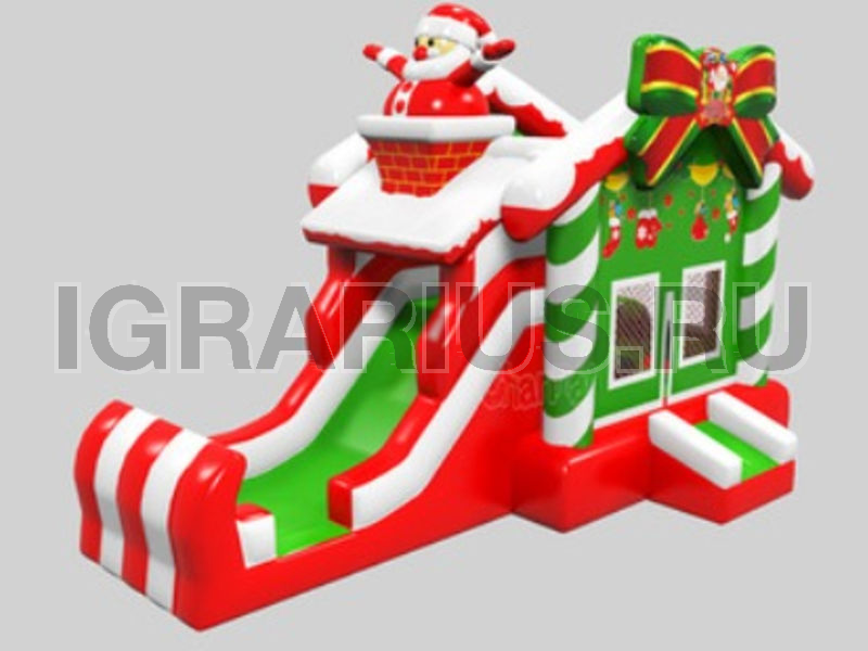 Самая яркая новинка новогоднего сезона 2020! Красочный надувной игровой центр, состоящий из детского батута и горки, выполненный в традиционных цветах Рождества и Нового года, с праздничным декором в виде рождественских бантов и веселого Санты, вылезающего из дымохода, несомненно станет самой незабываемой интерактивной зоной на любом новогоднем и рождественском утреннике! Леденцовая горка с милым рождественским домиком - эксклюзивный аттракцион празднования любого новогоднего торжества!
