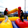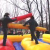 Аттракцион Богатырские потехи создан для настоящих смельчаков и любителей активных развлечений. Теперь у вас есть уникальная возможность бросить непростой вызов своим друзьям и пригласить их принять участие в увлекательных боях с помощью батутного меча на надувной поверхности. В этом испытании вам понадобиться не только ваша сила, но также ловкость и умение держаться на неустойчивой поверхности, стараясь при этом поразить своего соперника. Ваши гости останутся довольны и сделают множество веселых фотографий, на которых участники боя сражаются за титул настоящего богатыря!