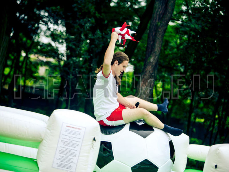 Аттракцион Механический бык родео футбольный мяч отличного настроения! Уникальный футбольный аттракцион-родео для всех любителей футбола! Главный принцип аттракциона: кто дольше удержится на гигантском футбольном мяче. Полностью безопасен даже для детей, т.к. изготовлен в Евросоюзе и соответствует всем стандартам безопасности в Европе.
