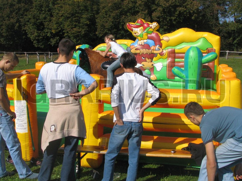 Родео Вестр - самое крутое Родео из нашей коллекции! Если вы в душе бесстрашный ковбой, то этот аттракцион для вас! О, Дикий Запад! Страна скалистых гор! Страна ковбоев и голубых озер! Дикие прерии, апачи и команчи, лихие ковбои и необъезженные скакуны - почувствуй дух отважных пионеров и закажи Родео Вестер для для дружной команды, готовых испытать свою ловкость и выносливость!