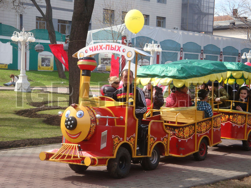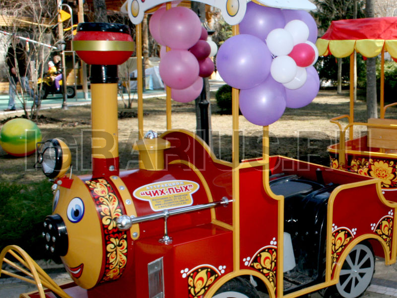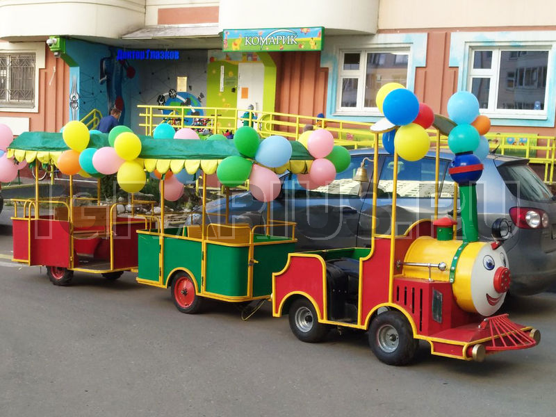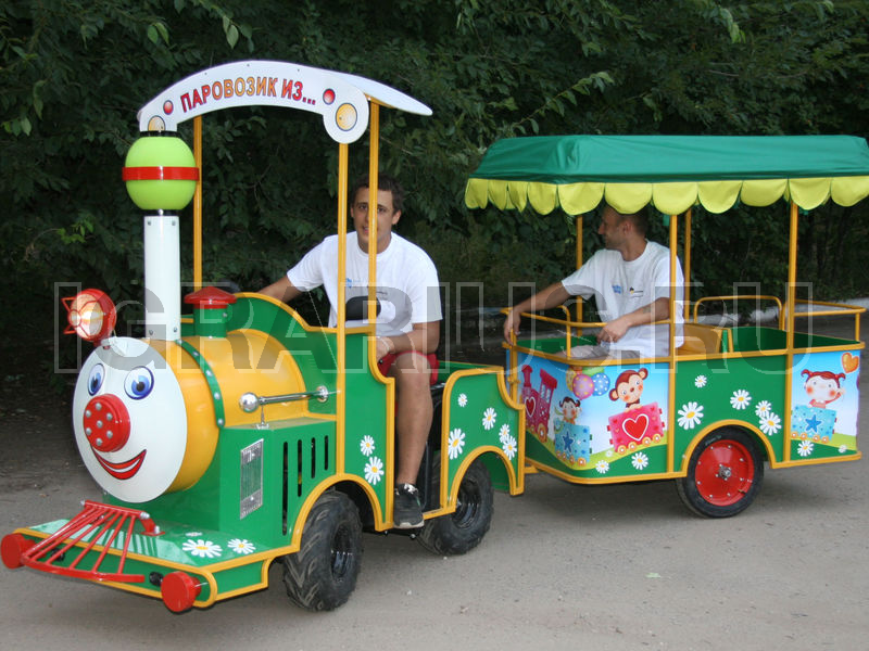 Все мы любим путешествовать на поезде. Незабываемый стук колёс, скорость, мелькающие города и леса мы прокручиваем в нашем воображении снова и снова, пока новые впечатления не затмят предыдущие. На каждом семейном празднике мы встречаем большое количество детей и их родителей, которые веселятся, развлекаются и просто хорошо проводят время. Сколько позитивных эмоций испытает ваш ребёнок, если к нему подъедет весёлый паровозик с чудесной песенкой и дружелюбным шофёром! Прокатиться по развлекательной площадке, поравняться с другим паровозиком, что распевает вместе с детьми и их родителями задорные песенки, посигналить друг дружке и отправиться дальше в путь! Вот она радость, вот оно веселье! Аттракцион «Два паровозика», в каждом из которых есть 2 вагончика - отличный способ разрядить шумную атмосферу праздника, поднять настроение своим детям и вспомнить любимую поездку их родителям!