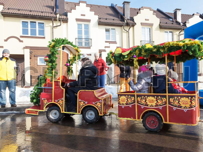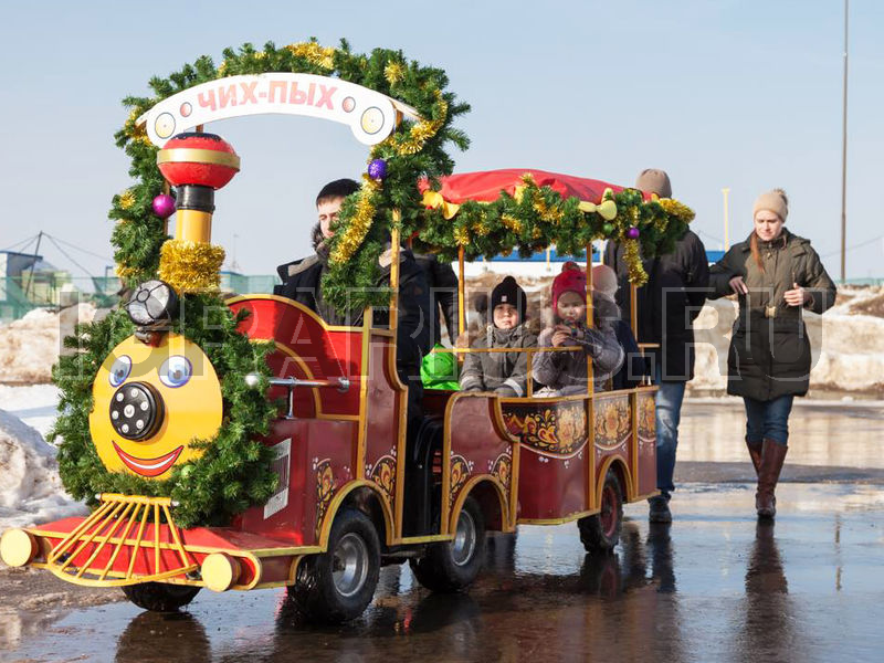 Рождественский паровозик - это практически настоящий Полярный Экспресс, который весело доставит вас к самому любимому празднику - Новому году и к самому Деду Морозу! А может быть наоборот - сам Деду Мороз со своей внучкой Снегурочкой и целой свитой веселых новогодних персонажей прикатит на Паровозике к вам в гости! А на рождественских и новогодних гуляниях в парке, сквере, на приусадебном участке или в детском саду, паровозик может стать настоящей находкой! Закажите в аренду на новогодний праздник Рождественский паровозик и пусть ваш новый год запомниться надолго!