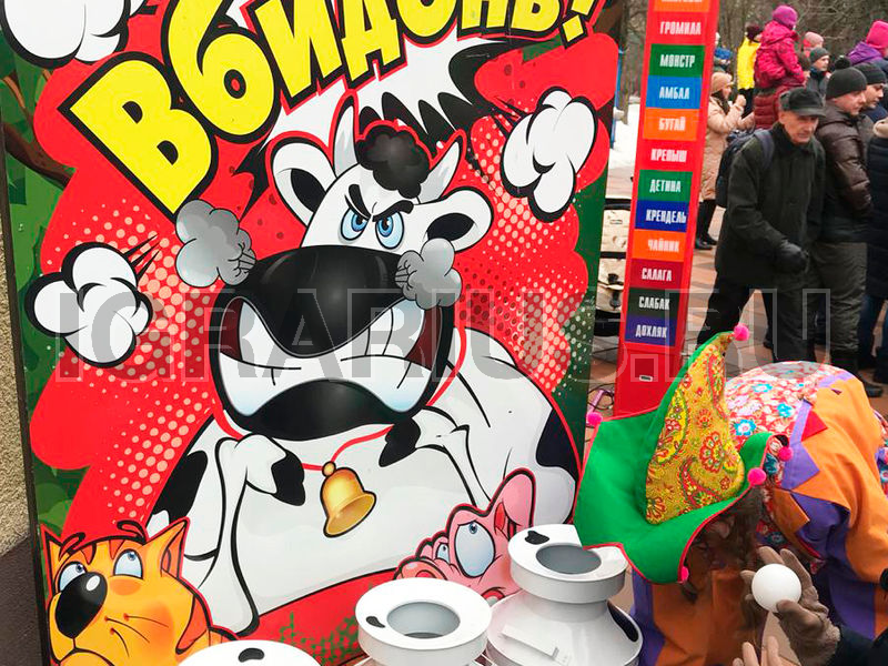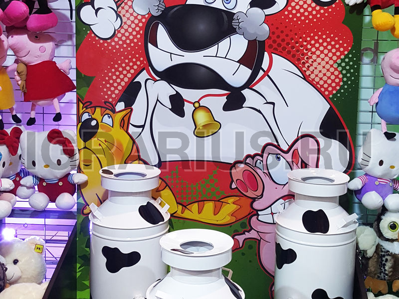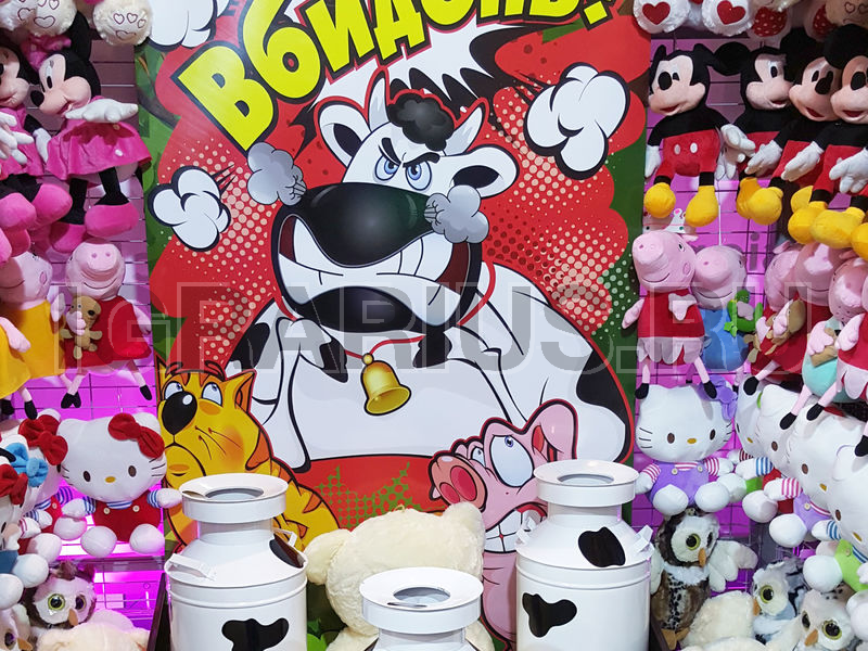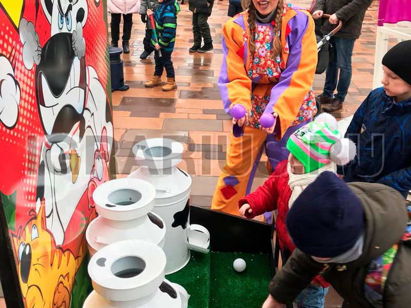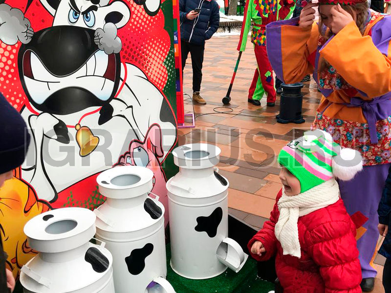 Есть разные виды баскетбола, но вы когда-нибудь видели, чтобы мячи забрасывались в молочные бидоны? Это не так просто! Ведь форма у пятнистых бидонов достаточно не обычна, и не все броски смогут быть засчитаны. С аттракционом «Вбидонь» ты можешь посоревноваться с другом в своей меткости, выяснить, кто же из вас все-таки смог «вбидонить» больше мячей, и получить приятный приз!