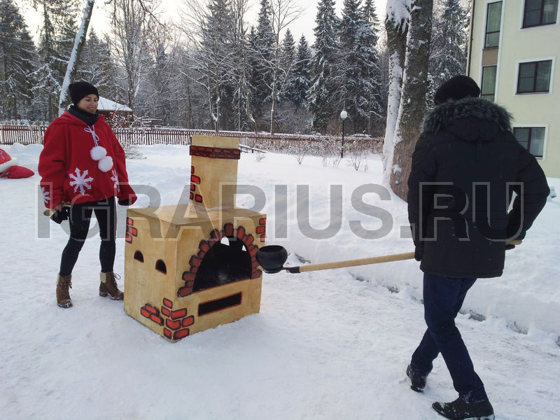 Организуете Масленицу или массовое русское гулянье? Удивляйте гостей незабываемыми аттракционами! Один из них - Печка Русский тир! Попробуйте закинуть в печные чугунки деревянные ложки! Думаете это так легко и просто? А вот и нет! А пробежать наперегонки с ухватами и чугунками тоже думаете легко? А вы попробуйте! Печка русский тир - отличный фольклорный аттракцион для самой веселой Масленицы! В комплект входит печь, ухват, ложки и чугунки.