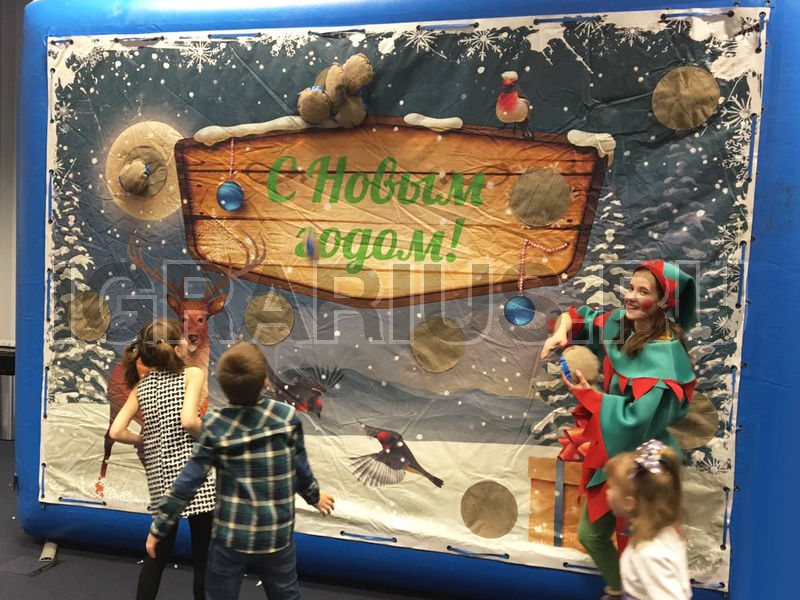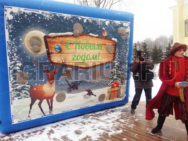 На любом зимнем празднике, будь-то Новый год, Рождество, Святочные гуляния или Масленица будет уместен интерактивный аттракцион тир Снежки. Это надувная конструкция с красочным банером, где каждый может поупражняться в ловкости и показать на что, он способен. Аттракцион будет интересен всем, от мала до велика, ведь даже малыши смогут забросить свои снежки и заработать призовые очки, ну а взрослые вообще могут устроить веселые соревнования на самого ловкого снегомета!