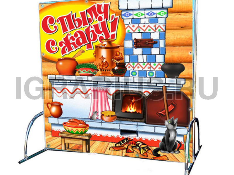 Аттракцион представляет собой яркий, красочный стенд и пять блинов, которые нужно будет закинуть в печь с расстояния! Придумайте соревнования, а для того, кто первым закинет все пять блинов в печь - вручите приз! Сделайте фотографии у стенда, чтобы запомнить такое событие!