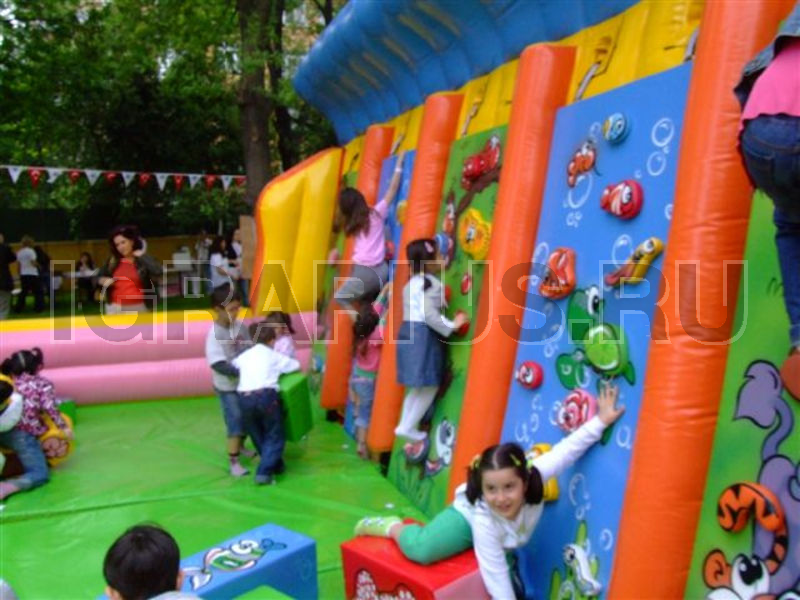 Детский скалодром для самых красивых праздников! Такого вы еще не видели! Яркий и красочный скалодром не в игровом центре или развлекательном комплексе, а у вас на даче, в коттедже или в офисе! Американское качество, европейский дизайн, сертификаты надежности и безопасности для ваших детей! Вместе со скалодромом можно заказать целую игровую зону с мягкими модульными конструкторами, детскими игровыми фигурками и мягким полом. Красочное игровое пространство для любого детского праздника!