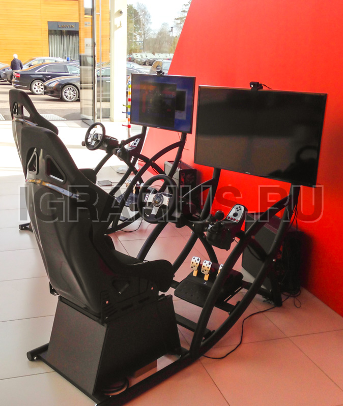 - профессиональный эргономичный жесткий стенд со спортивным автомобильным креслом-ковшом, с возможностью настройки под комплекцию пилота