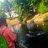 - До начала мероприятия наши техники в акватории водоёма устанавливают буйки-ворота.