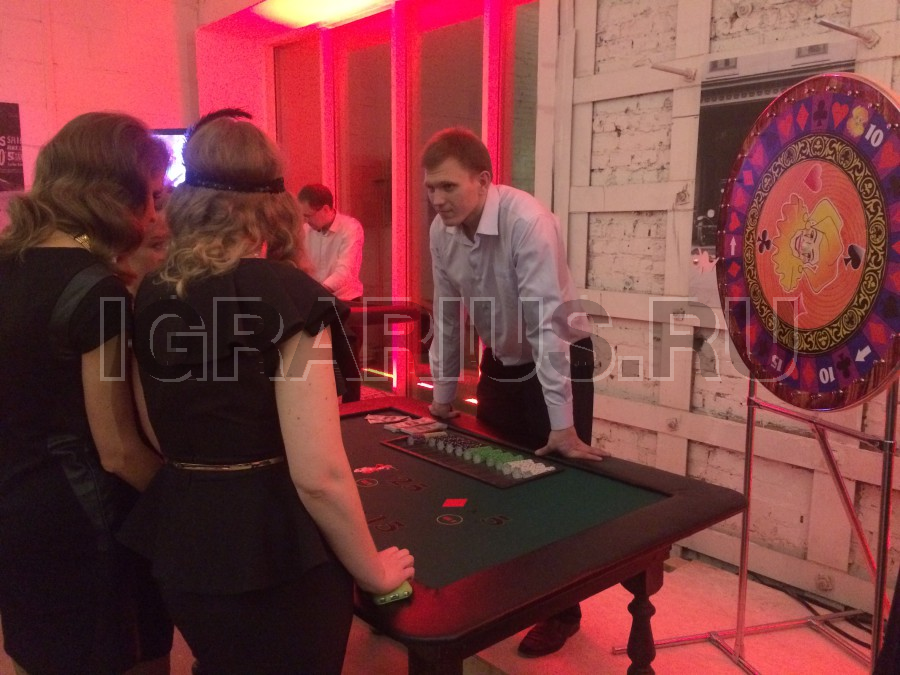 Непременный атрибут в ассортименте выездного фан-казино – Колесо Фортуны. Само колесо яркого специального дизайна размещено на стойке, но обязательным аксессуаром аттракциона является также и стол для фан-ставок. Собственно, в нашем варианте выездного казино Колесо Фортуны классического формата, предусматривающее ставки на одну из карточных мастей с соответствующим коэффициентом выигрыша, применяемом к конкретным ставкам, которые участники делают на специальном столе. Вы уже догадались, что чем реже данная масть встречается на колесе, тем выше коэффициент. И хотя гораздо больше желающих поставить на поля с небольшим коэффициентом, чтобы увеличить возможность выигрыша, всегда найдётся на празднике и немало тех, кто целенаправленно и уверенно рискует.