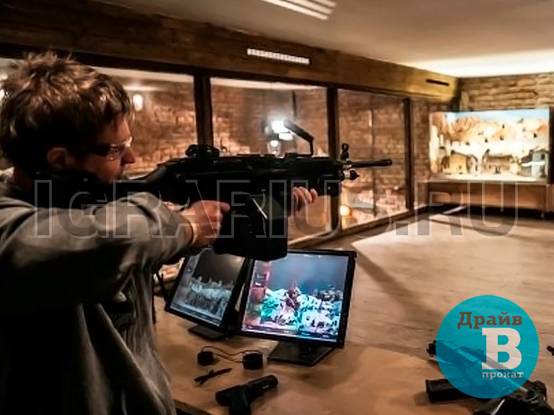 Интерактивный тир – это своеобразный симбиоз интерактивного лазерного, и классического пулевого тира. На экран выводится один из 200 сценариев, ваша задача точно стрелять по объектам на экране мелкими пластиковыми шариками из страйкбольного копийного оружия.